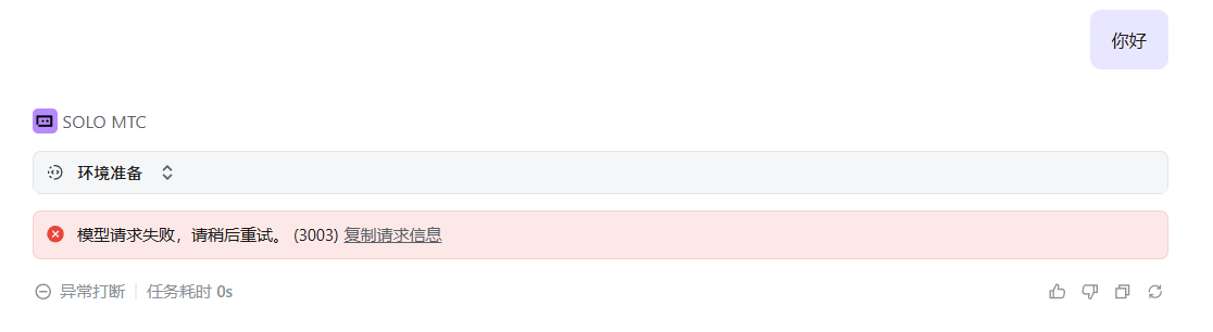 我明白了,你是在网页端的 Solo 模式下遇到了这个 AI 连接异常问题。