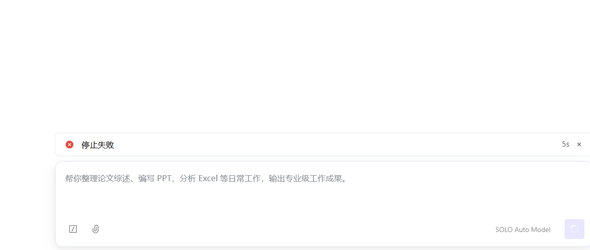 我理解你在 Solo web 版本中遇到了偶发的任务卡住问题,思考终端没有输出也无法停止,卡住后很长时间都没法继续使用。
