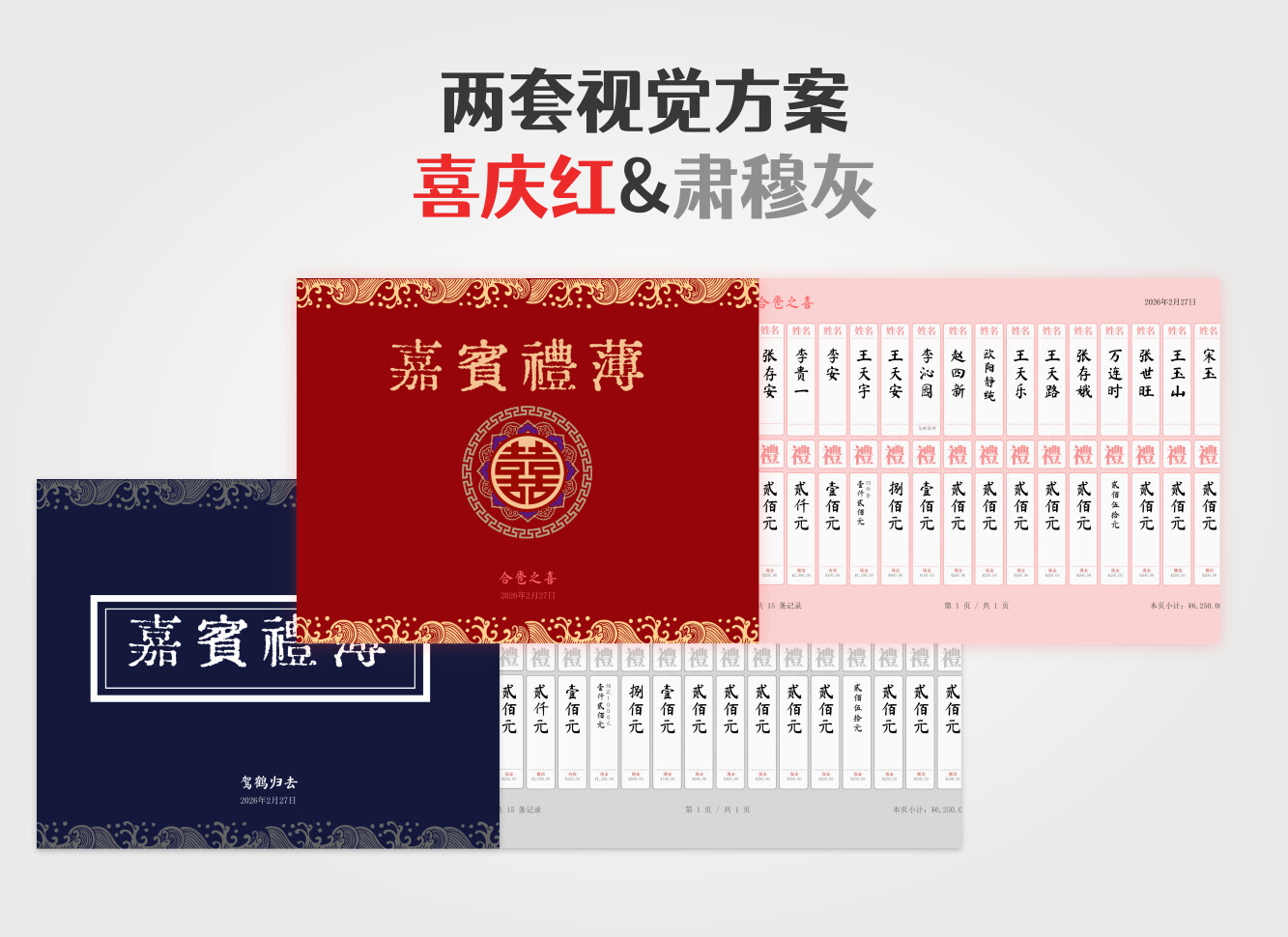 两套模板,一套喜庆红、一套肃穆灰。