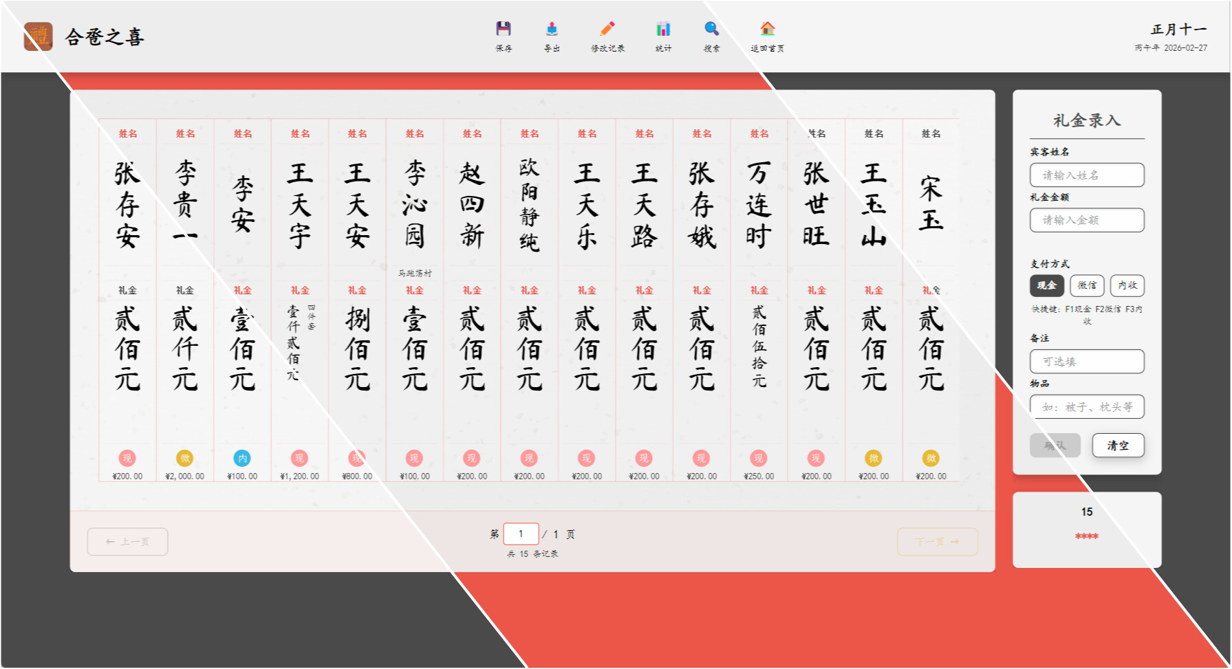 一个专门针对酒席礼房先生使用的电子礼金簿。