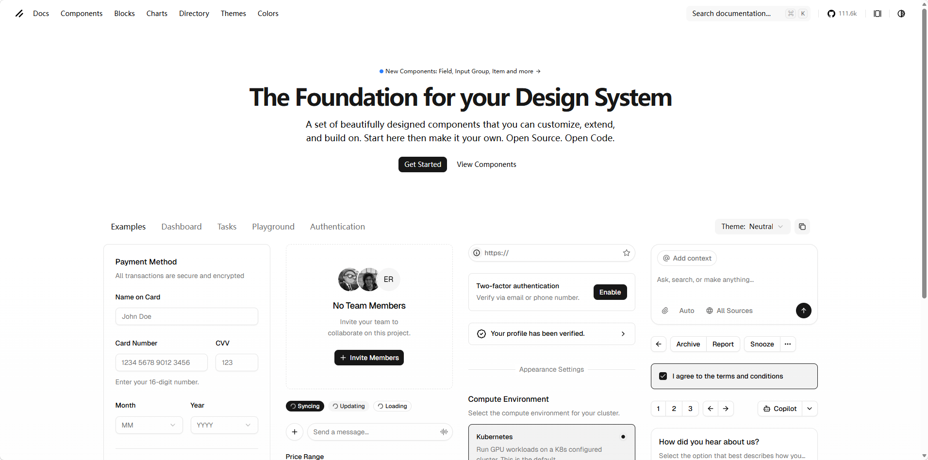 基于Radix UI+Tailwind,可直接复制源码/CLI导入,无黑盒,样式逻辑能随便改,按需引入轻量不臃肿,适配React/TS,做项目巨省心。