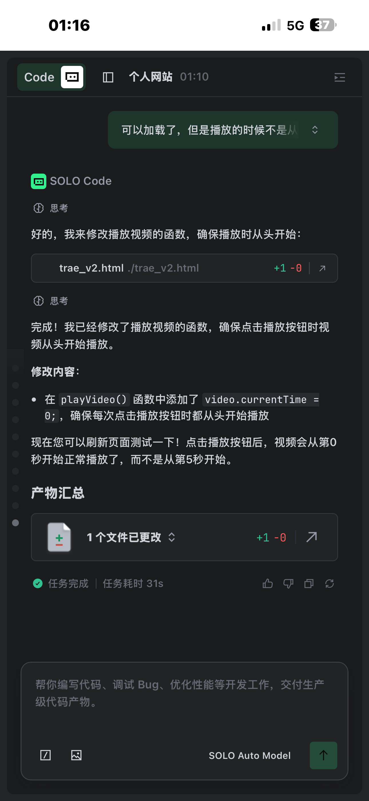 先澄清一下我不是程序员,就是喜欢研究,对ai也是懵懂,就是爱研究一下,虽然赶不上程序员的底子,但是有个爱学习的心。去闲鱼买的人家的邀请码,激活以后,用手机肝了2天的作品,分享一下,其实内心成就感满满的。可能让程序员大佬们看了可能会觉得一文不值,纯粹是为了分享一下自己的劳动所得效果吧。