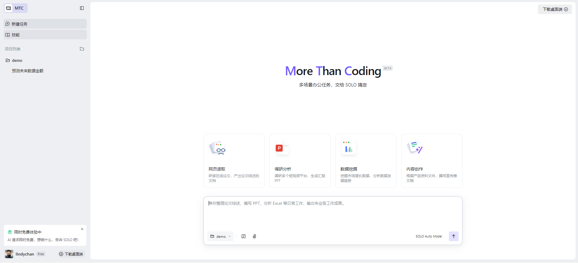 MTC(More Than Coding)模式是本次最大惊喜,真正让 AI 覆盖产研全链路: