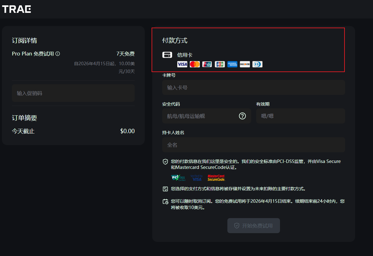 这个情况通常和你使用的版本有关。如果你用的是国际版(trae.ai),目前确实只支持信用卡支付,暂时没有支付宝选项。如果你用的是国内版(trae.cn),应该会有支付宝和微信支付的选项。