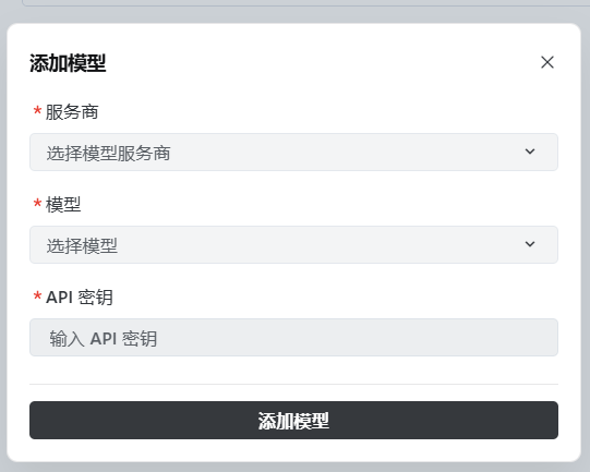 目前添加模型仅仅只能选择支持的服务商,不能支持自定义服务商,目前很多场景下需要用到自己本地的模型,或者独立部署的ai网关,或者代理商的ai网关,这种都无法添加模型。