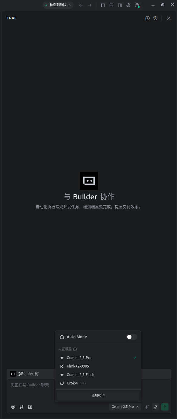 如图,更新不了,对应的模型也就只有4个,系统是ubuntu,trae国际版;trae国内版没有这个问题