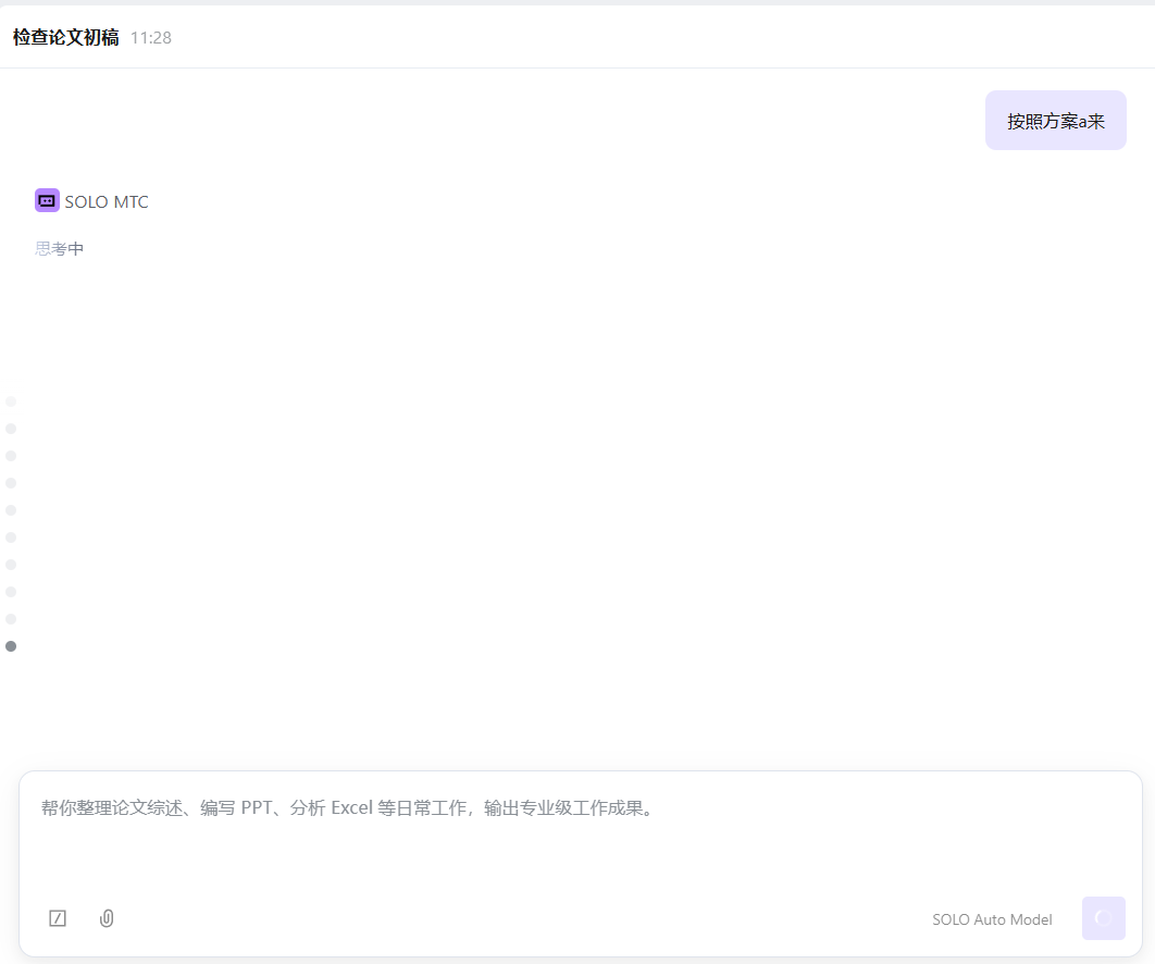 我理解了,你在使用 Windows 网页版的 SOLO MTC 时,AI 思考过程中卡住了,关闭网页再打开还是处于思考状态,刷新也没用。