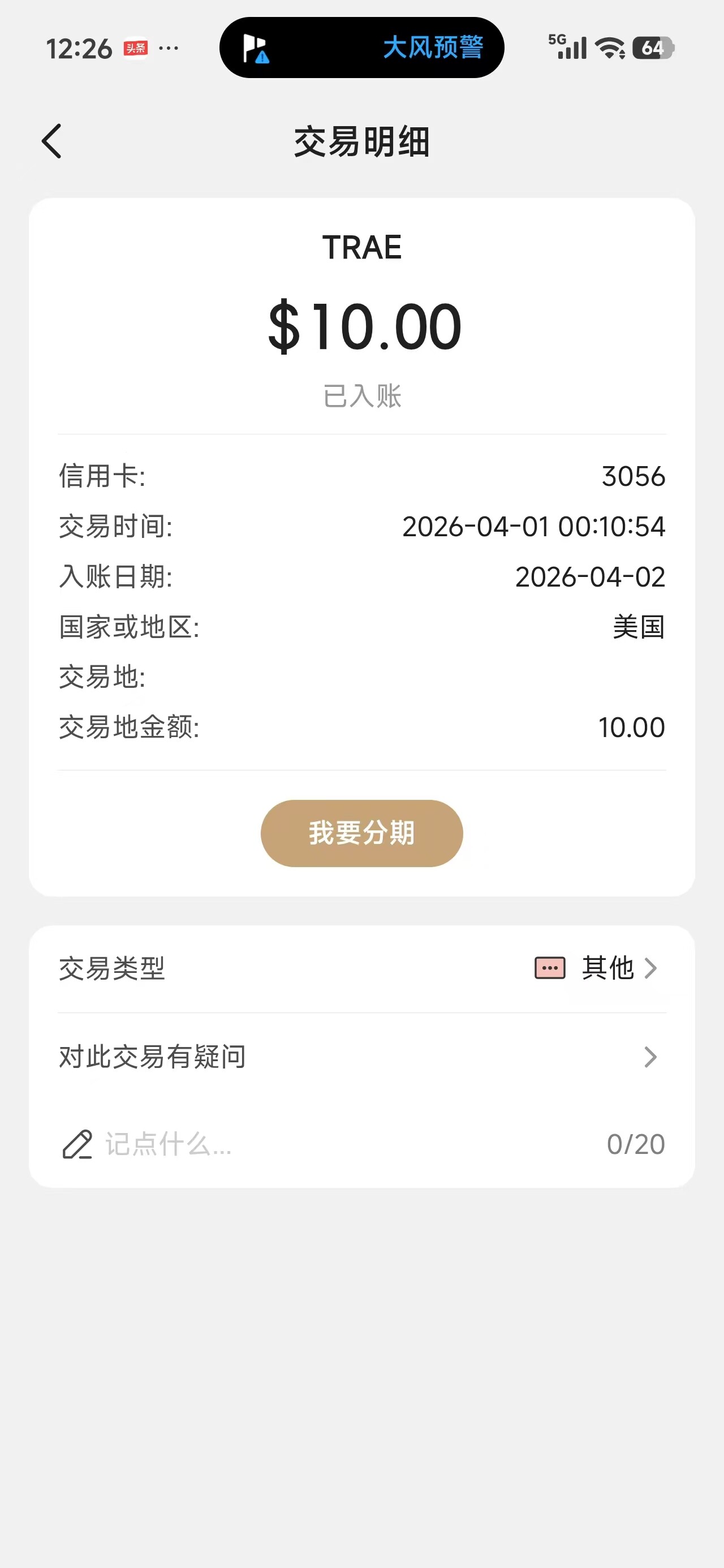 我在3月18号下载了trae想体验codex,本来说有两周免费额度使用,但是我没看到有codex的模型就没用过,但在2026年4月1号不知情的情况下被自动扣款10.00美元,截止今天4月8号我从来没用过任何pro功能和对话,我也不知道2周免费试用后会自动扣款,甚至那两周的免费试用我也因为没看到有codex模型而一次对话都没用过,在此申请退款。
