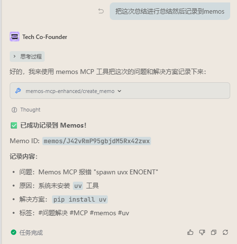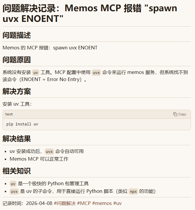 用SOLO Code模式,基于Memos官方API从零开发了一个MCP工具,取名叫memos-mcp-enhanced。