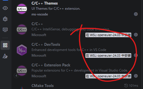 3.扩展界面中点击 “在WSL: openeuler-24.03中安装”