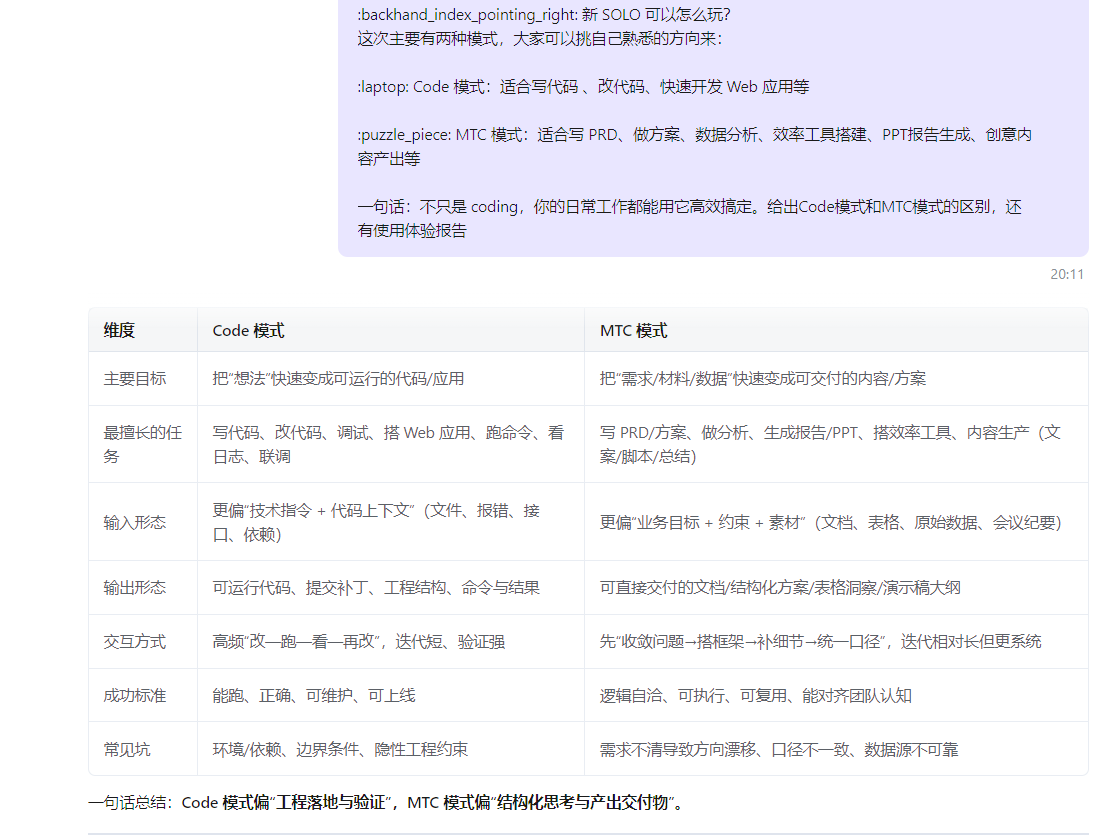 看到有分享活动,参与一下,顺便了解一下这个新的solo是什么,直接问solo本身,他是什么,活动给出一些说明,直接给到solo的对话,给出更详细的对比