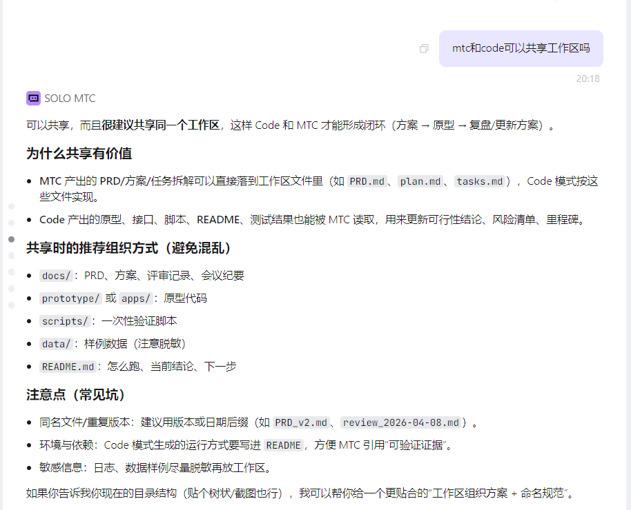 那这样这两个类似IDE里的/spec和/code,这个solo会自己创建虚拟环境ubuntu,那是否可以共用工作区
