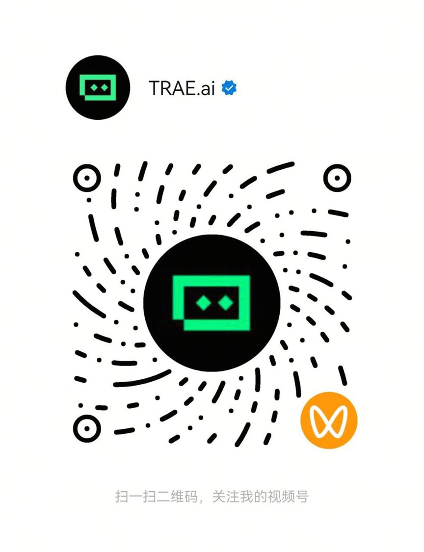 关注 TRAE 微信视频号,解锁「全新 SOLO」发布会亮点内容与精选案例视频,帮你更快看懂 SOLO能做什么、怎么用,并从真实案例中获取任务灵感,更顺利地开始实践。