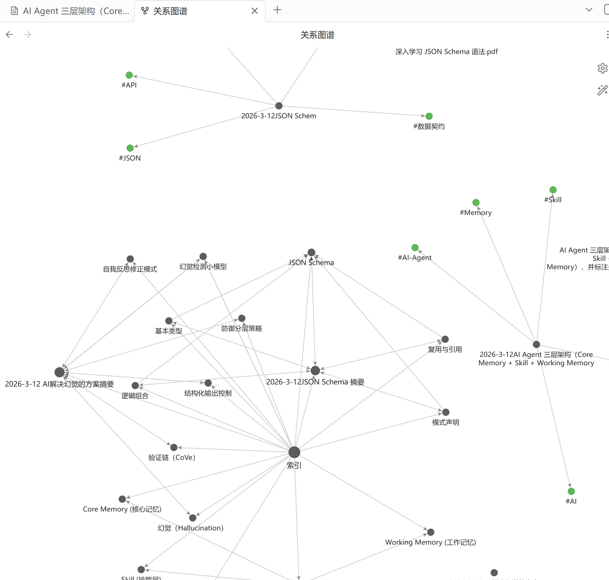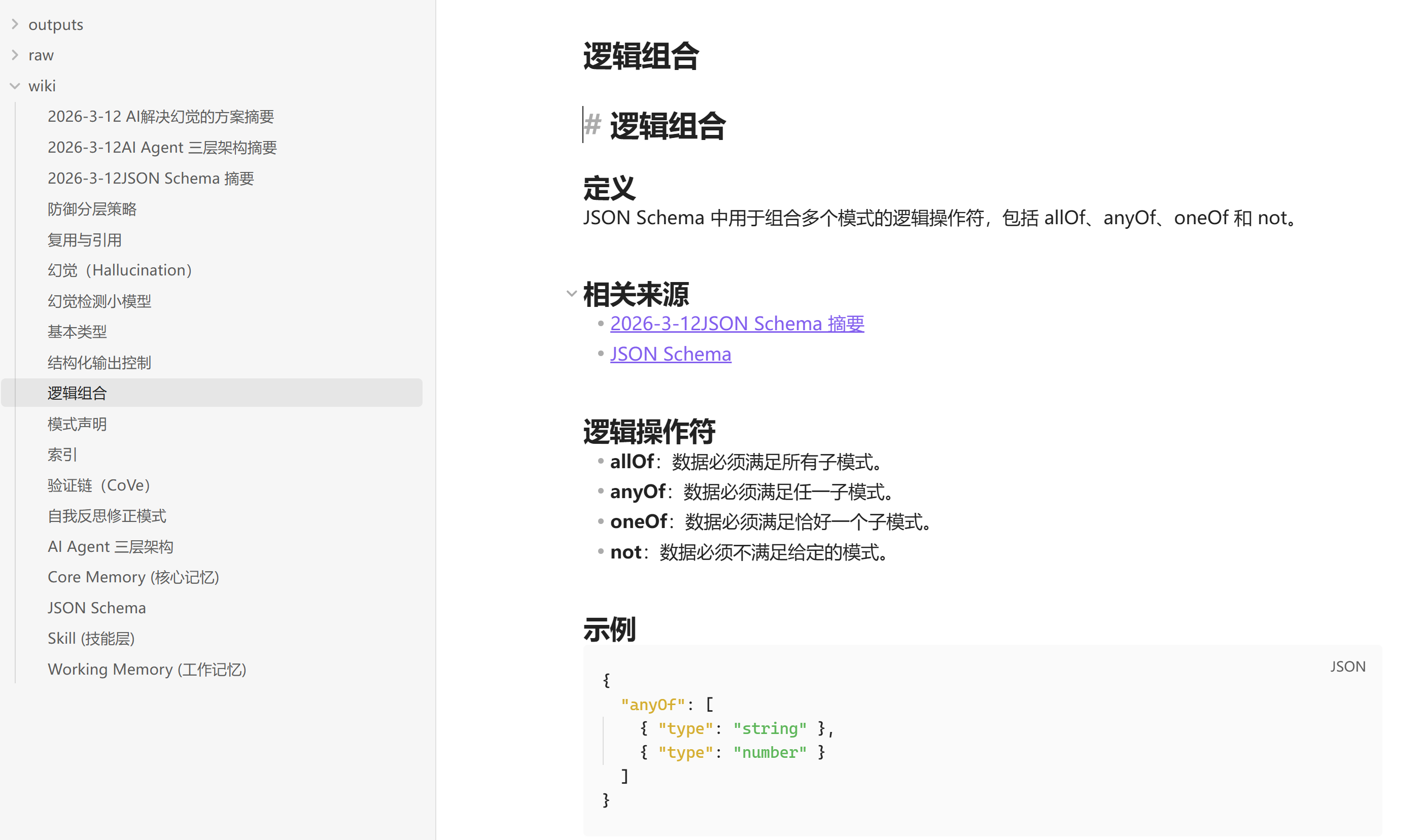 - 30+ 个知识条目,每个都有 Frontmatter 元数据和双向链接