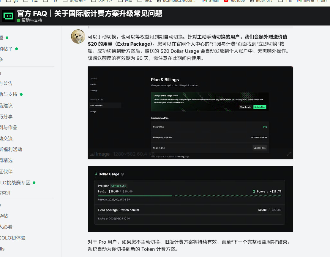 我25年12月8日购买了国际版pro的年费会员,这个是我的账号chengchaoshiro@gmail.com,到期日期是26年12月8日.这是我完成的权益周期.我没有主动升级计费方式,但是26年4月7日,我的请求次数重置的时候.给我自动升级了计费方式.在关于国际版计费方案升级常见问题里面,明确写明了如果不升级,就方案持续有效,直到”下一个完整权益周期”结束,才会自动升级计费方式.我的目前期望的有两个方向;