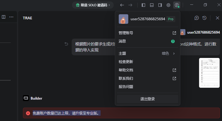 我了解了,这是TRAE关于免费试用账户的使用规则,同一设备确实仅允许登录一个免费试用账户。