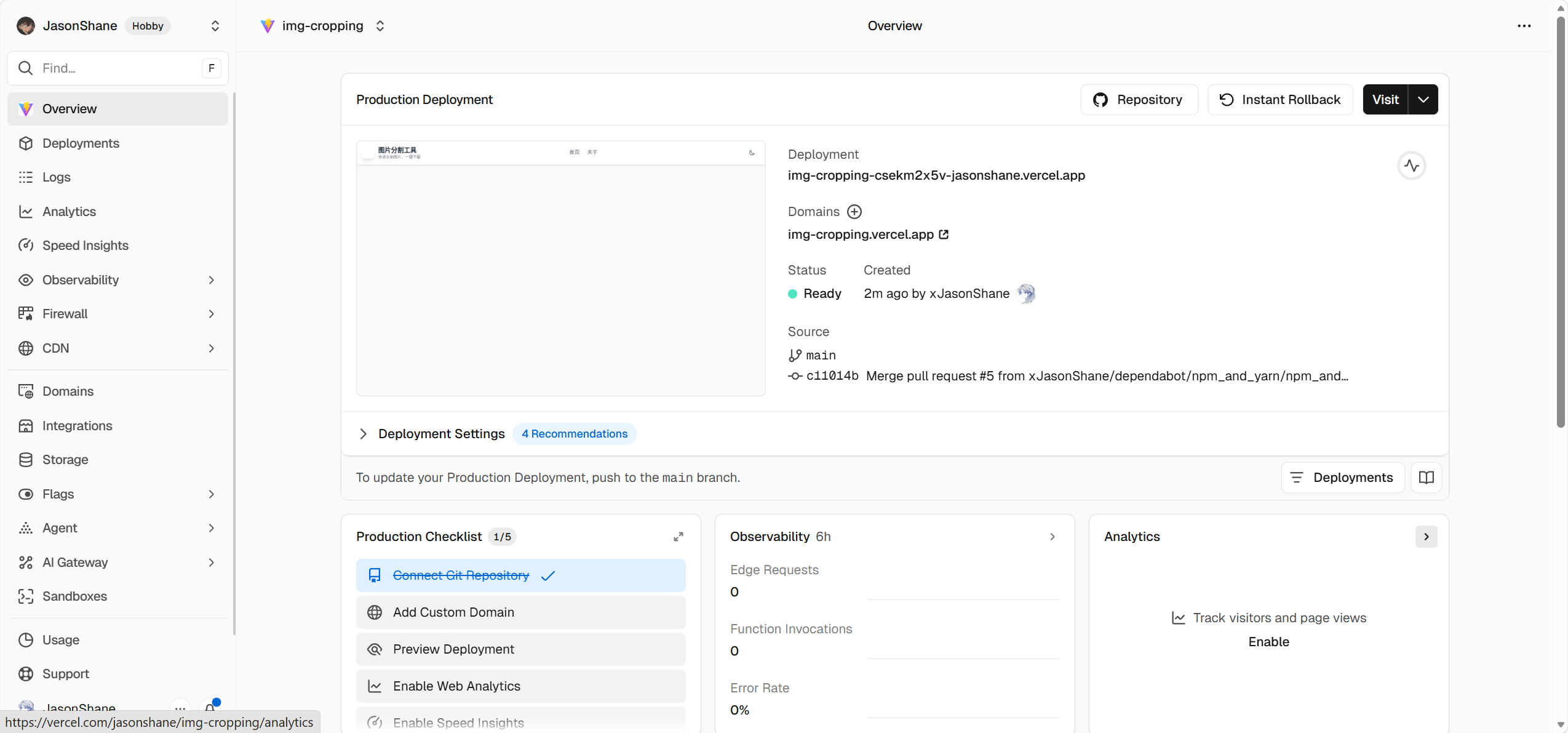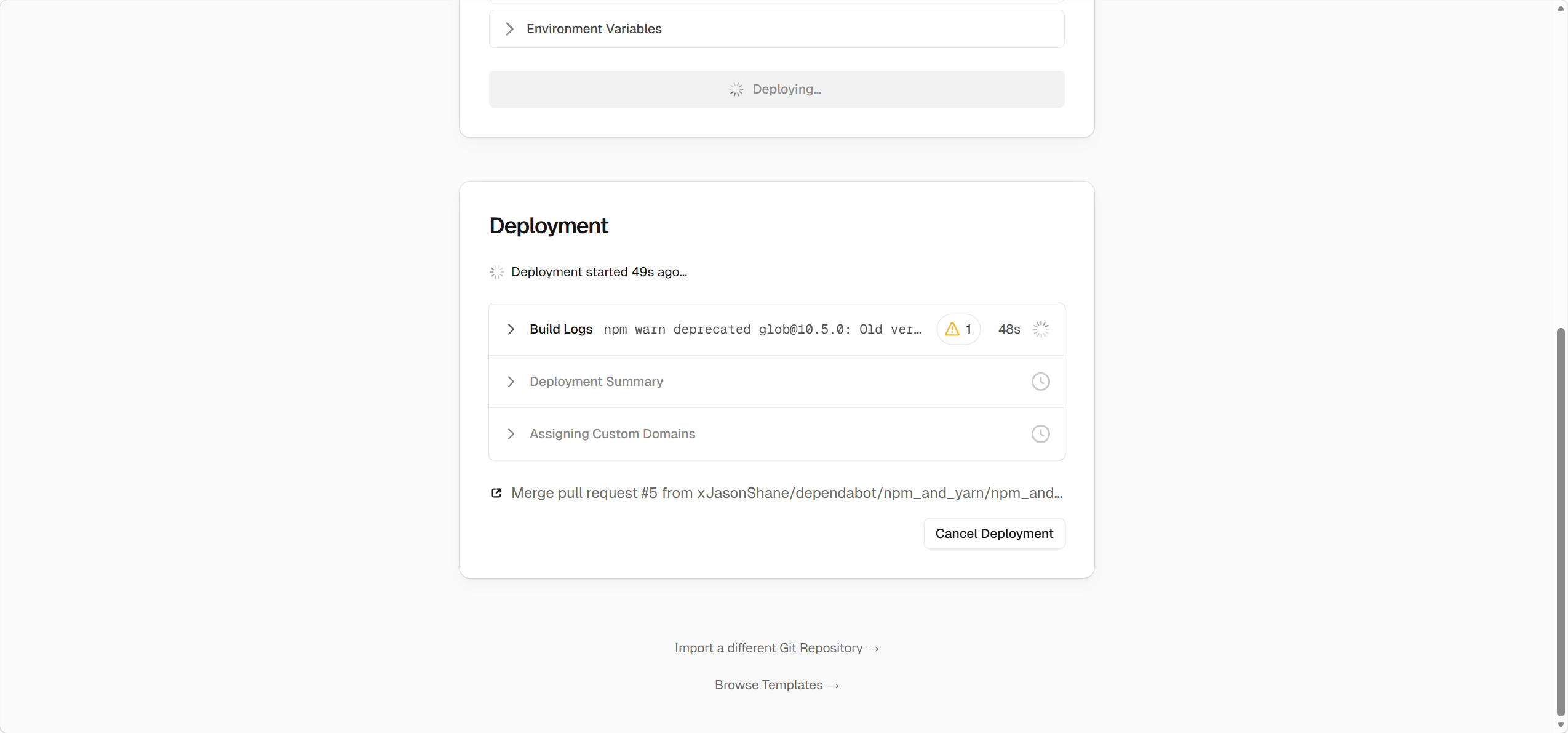 - 接下来演示选择其一部署方式的步骤(需要有git和云端仓库知识,最好是github)(优点是每次推送git commit这边都会自动部署!)