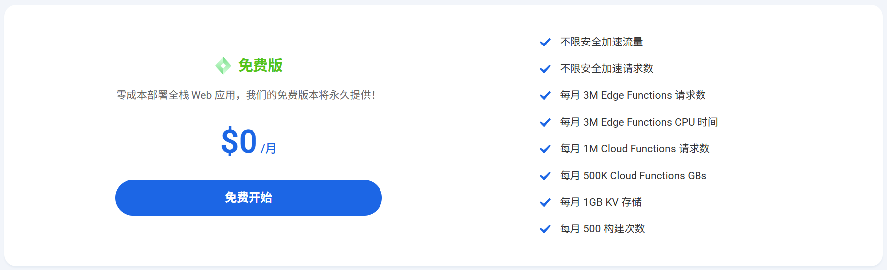 简介:企鹅少有的良心平台之一,同样提供“永久免费”(官网宣传~)的边缘部署服务