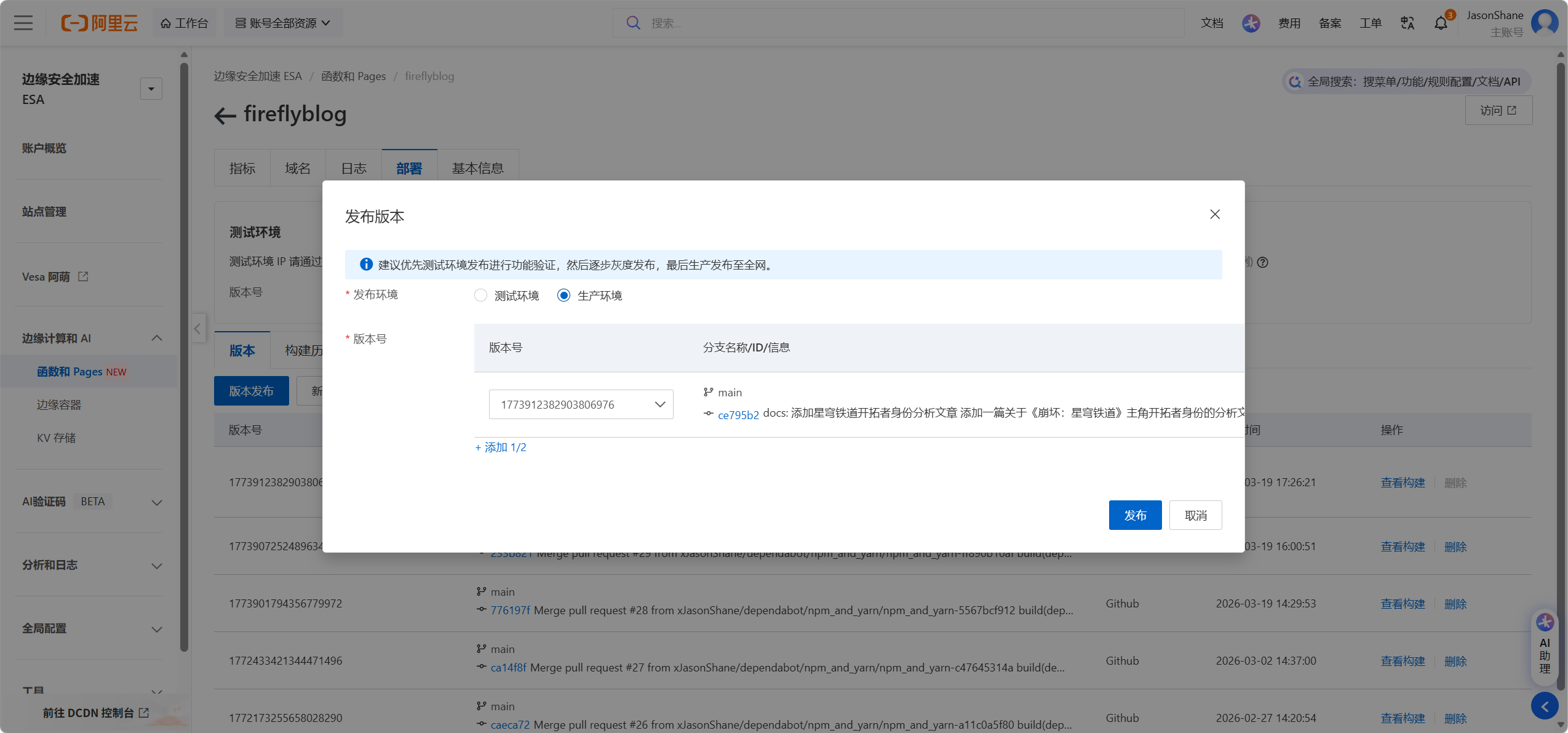 - 选择部署pages