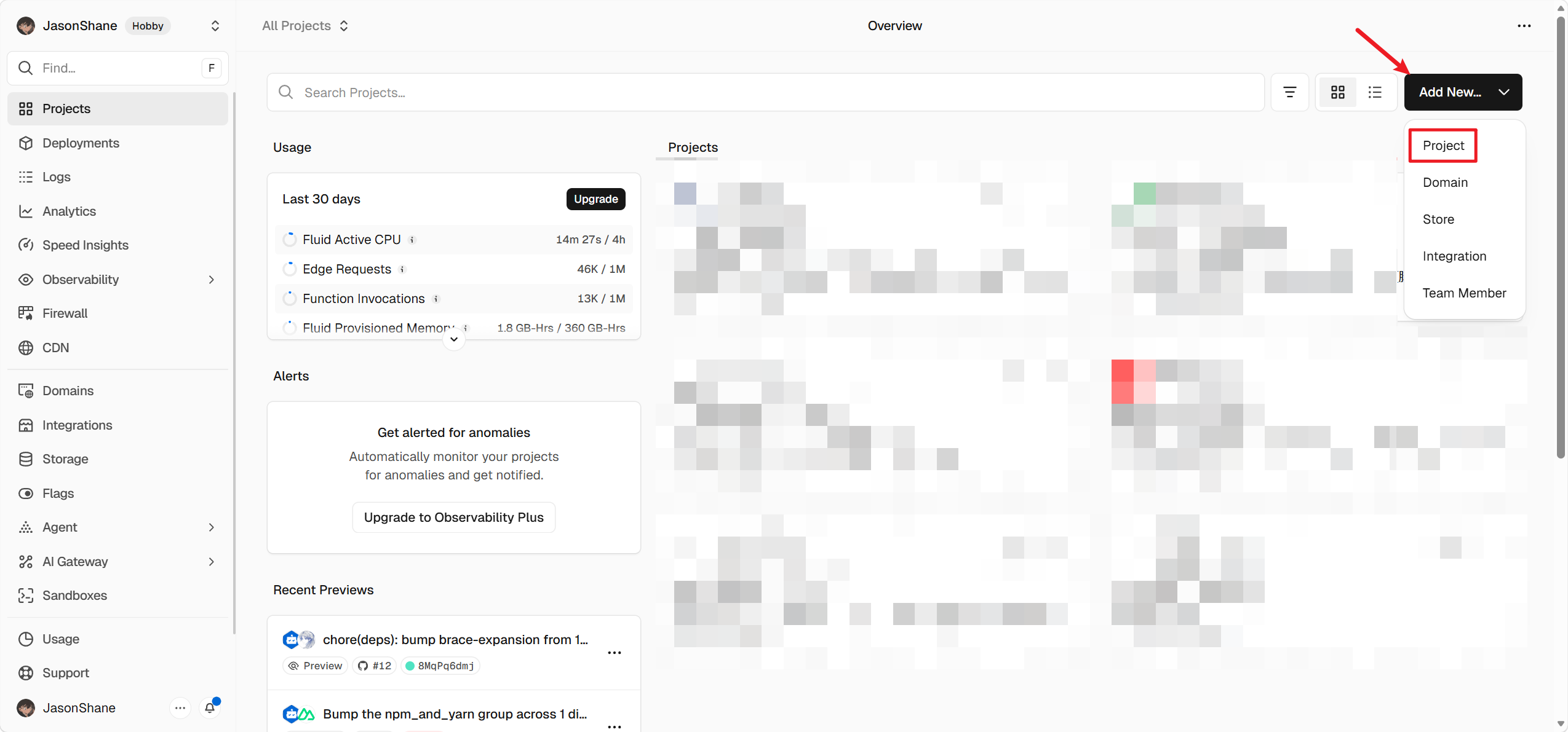 - 点击Add New…后选择Project