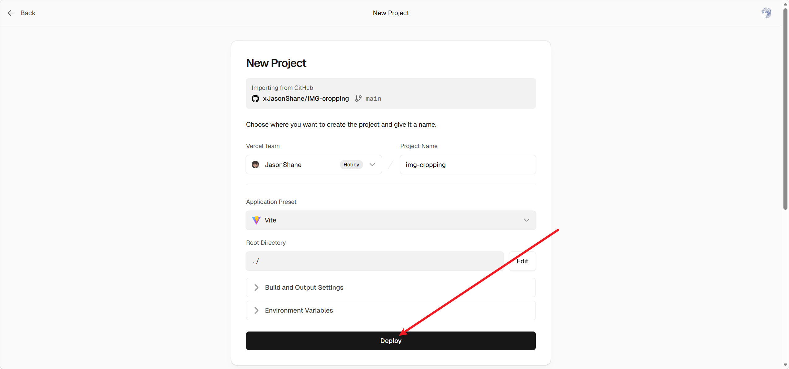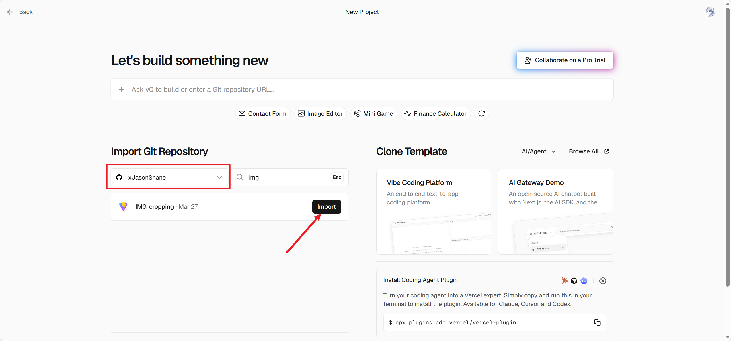 - 选择自己的Github账号,选择好项目之后点击Import(Vercel我没有找到主动上传代码文件的入口,但是AI说有,有兴趣的可以研究一下)