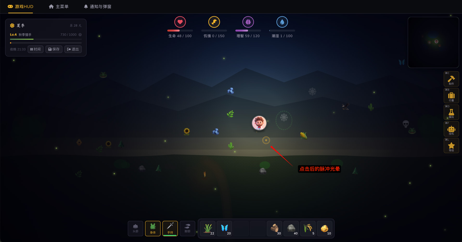 游戏提示嵌入:在通用台词中自然融入操作提示,比如在 PC 端可以通过快捷键组合进行快捷操作,“按 C 可以打开制作面板哦~”“按 B 看看行囊里有什么好东西!”