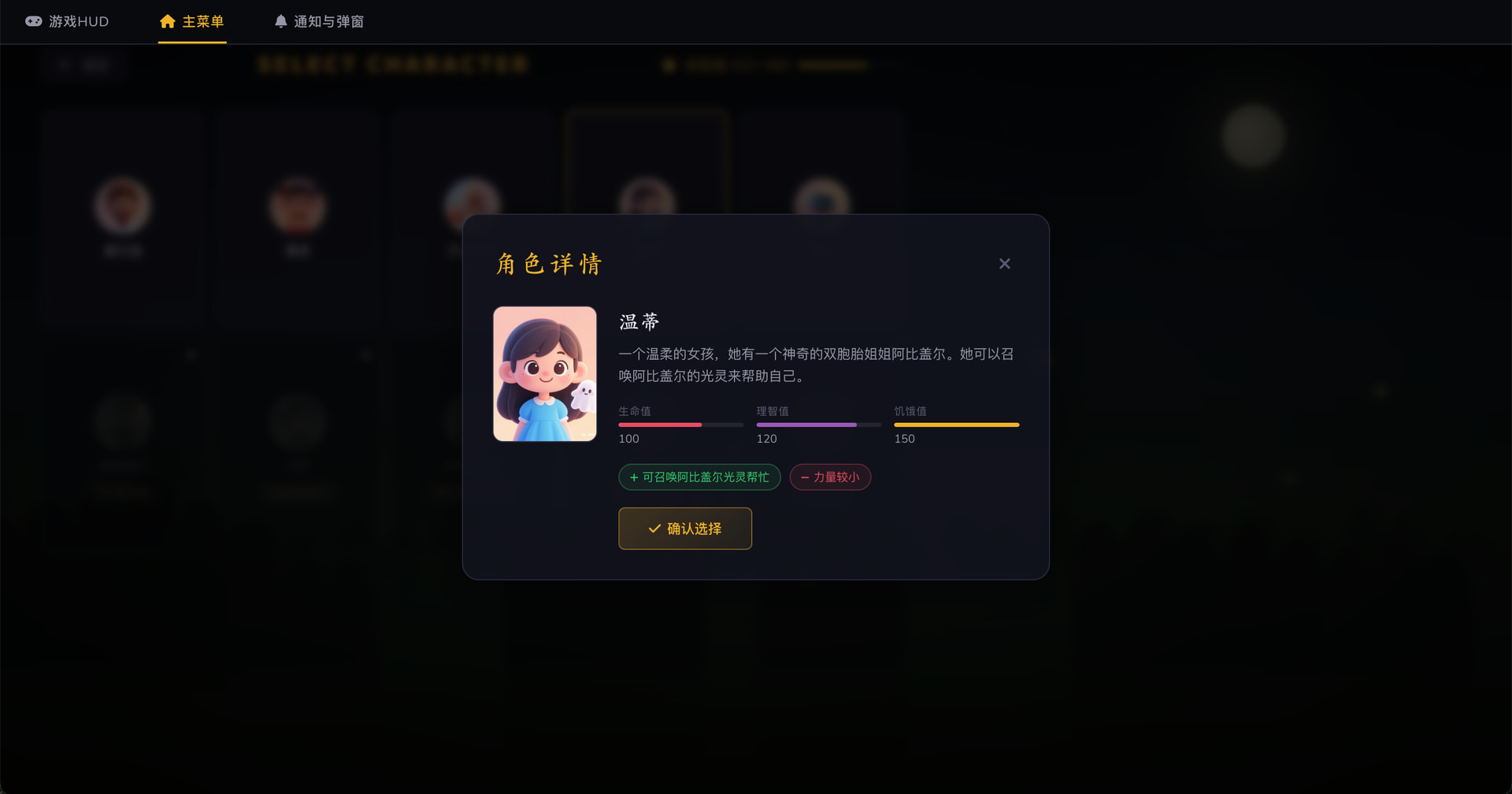 起因很简单——我给儿子看了原版饥荒的界面,他直接说"太可怕了"。原版饥荒的暗黑哥特画风、扭曲的角色头像、诡异的音效,对成年人来说是氛围感,对小学生来说就是恐惧感。所以我基于儿童友好的原则,对游戏的视觉和交互做了大量适配。
