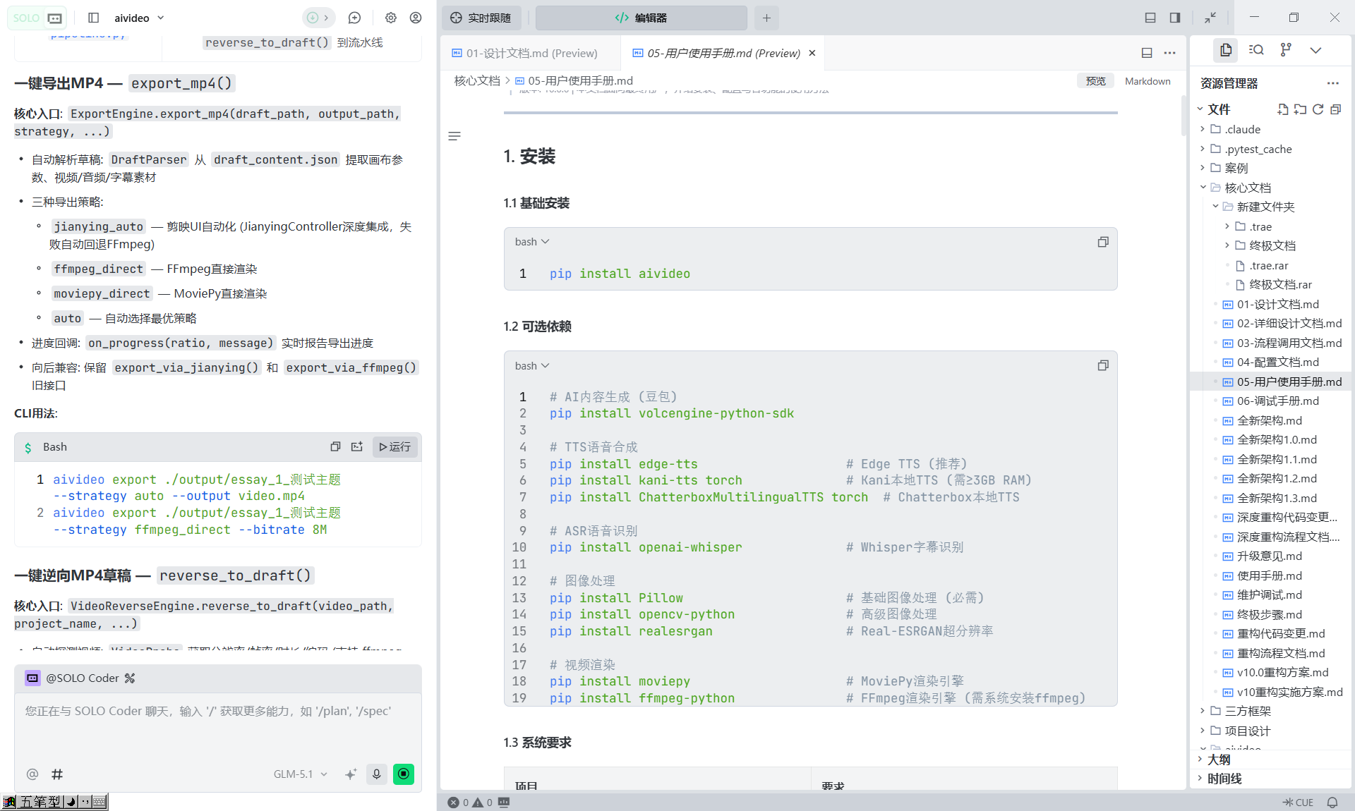 TTS四后端(Kokoro/Edge/Piper/Chatterbox)自动降级;导出三策略(剪映自动/FFmpeg直出/MoviePy) |