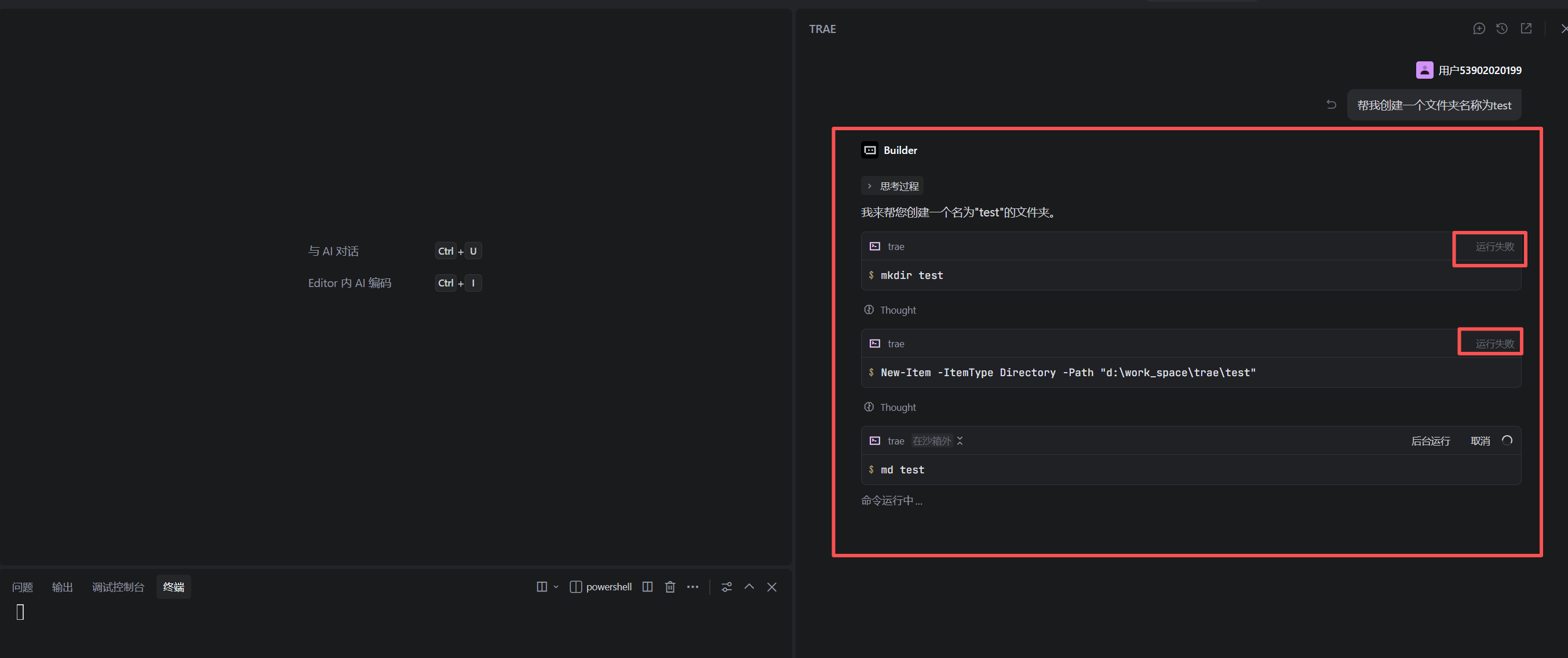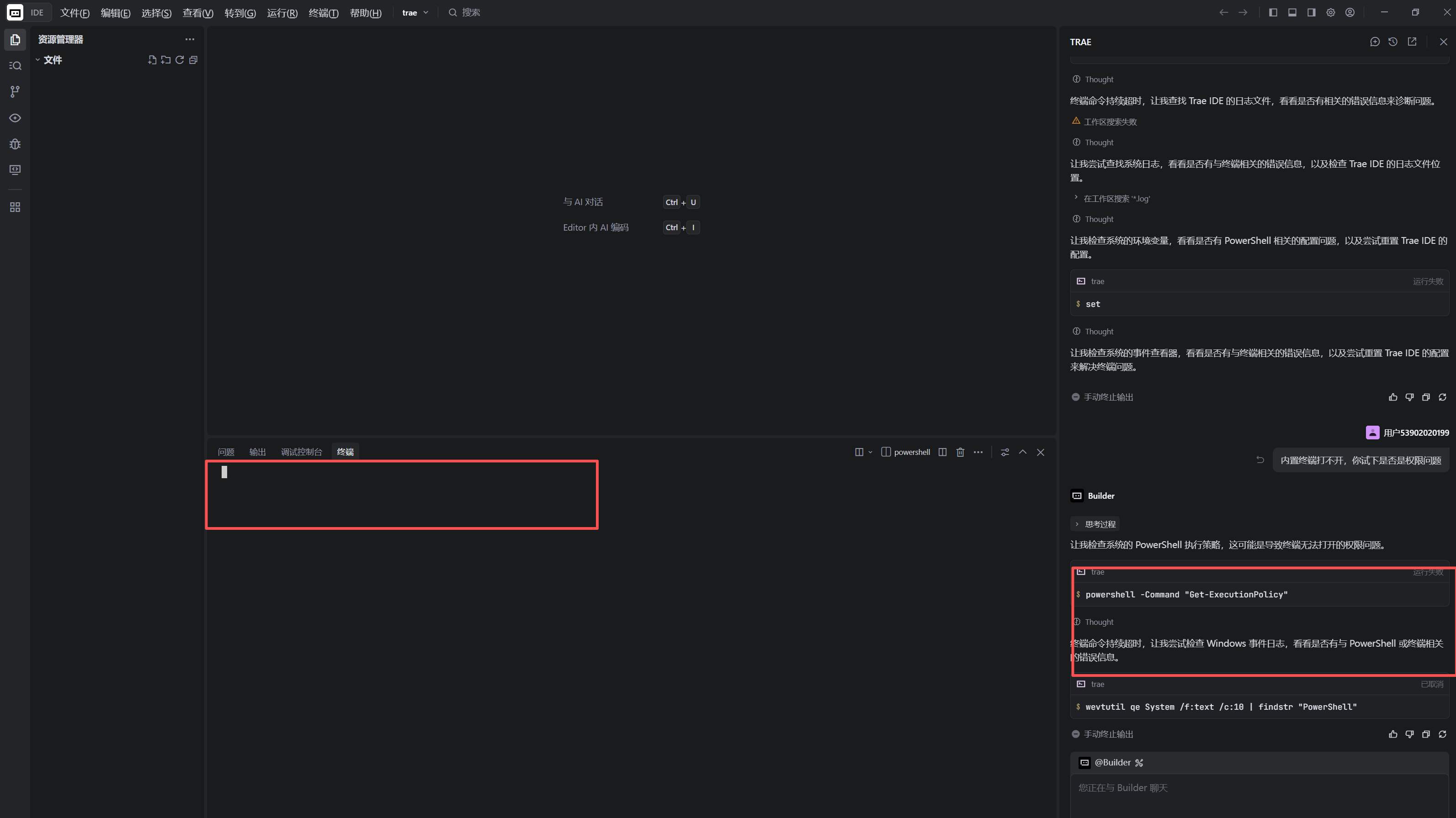 从打不开trae内置终端继续讨论:
