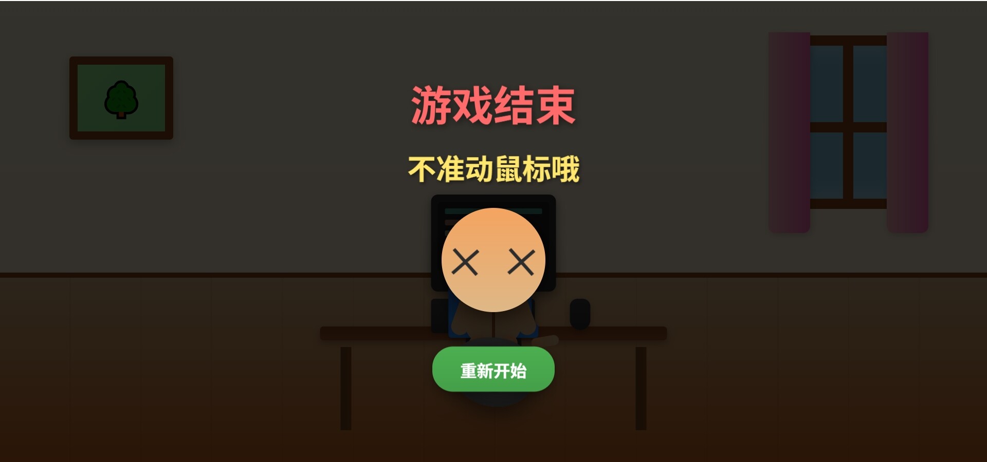 一旦移动鼠标,游戏角色就会被"砸死"