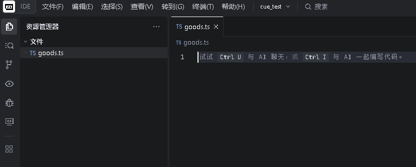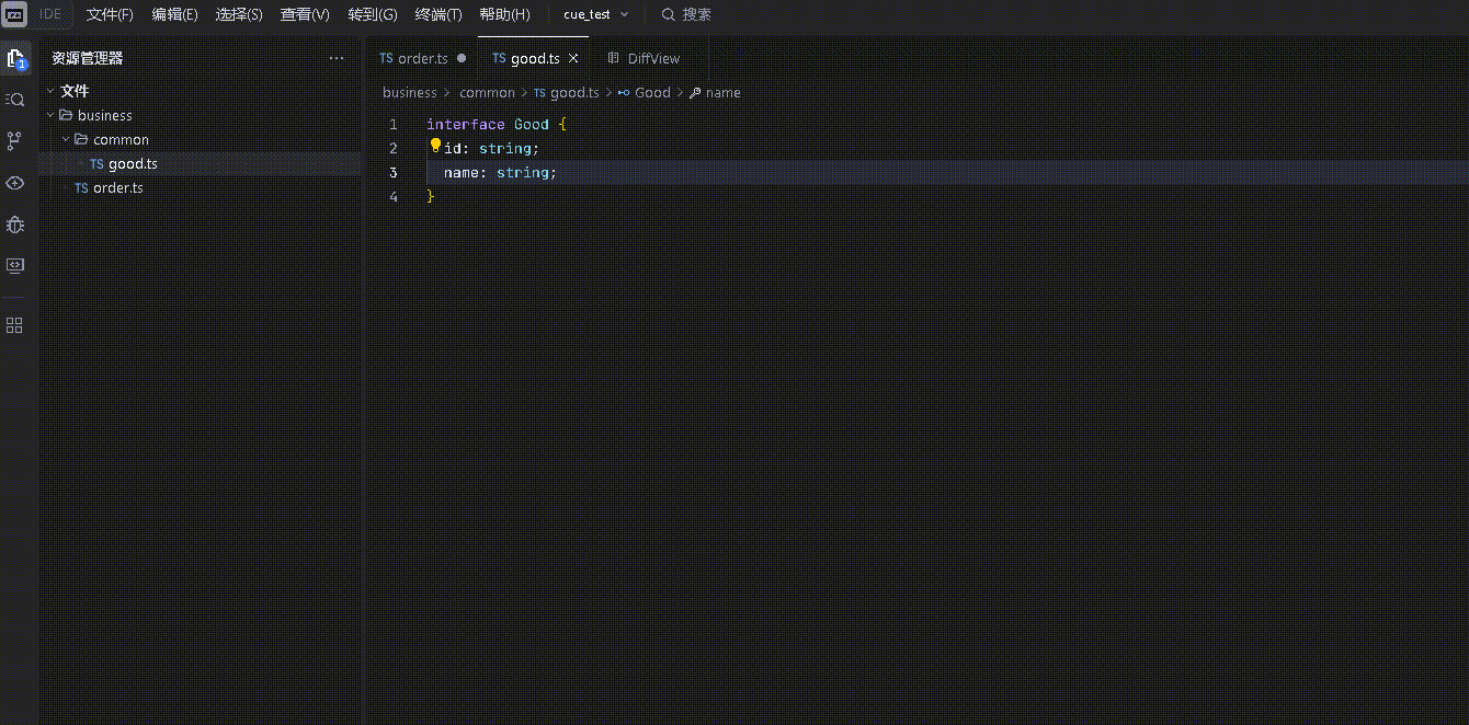 提示:补全代码时,CUE会自动匹配项目中已定义的“Goods”接口类型,避免类型错误。