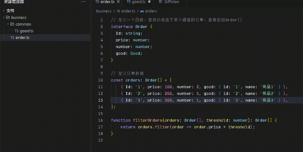 //定义一个函数,查找价格高于某个阈值的订单,直接返回order[]; -