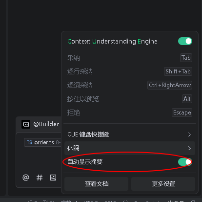 - 永久开关:进入IDE设置中心→通用设置→Tab功能面板,勾选“启用CUE上下文理解引擎”,可同时设置智能导入、智能重命名。