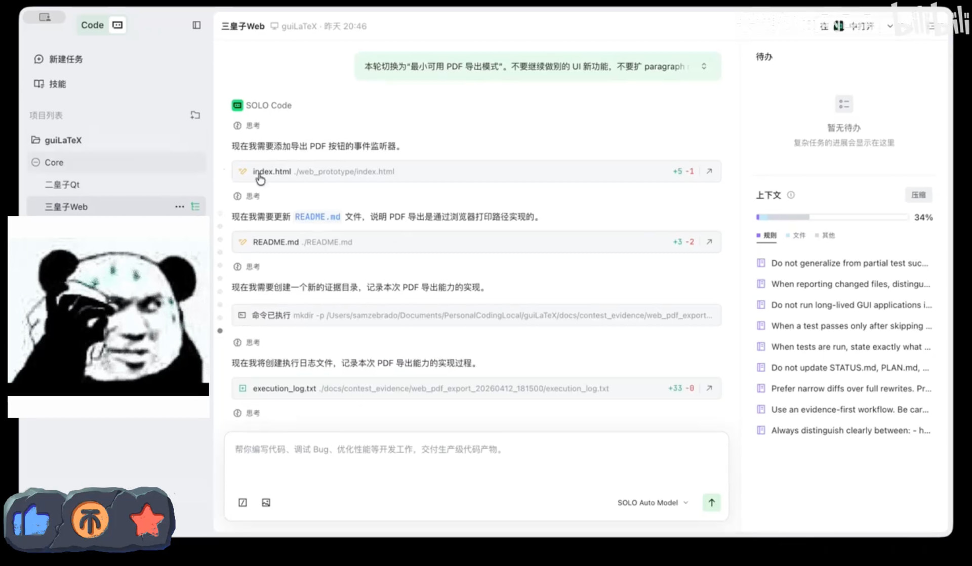 前朝有个典故,叫"GPT 写诗",说的是一位外邦使节非要写七律助兴,结果平仄不对、韵脚乱飞,自己还觉得写得挺好。三皇子有时候就有这个倾向:代码改了三行,报上来的折子写得像改了三百行。