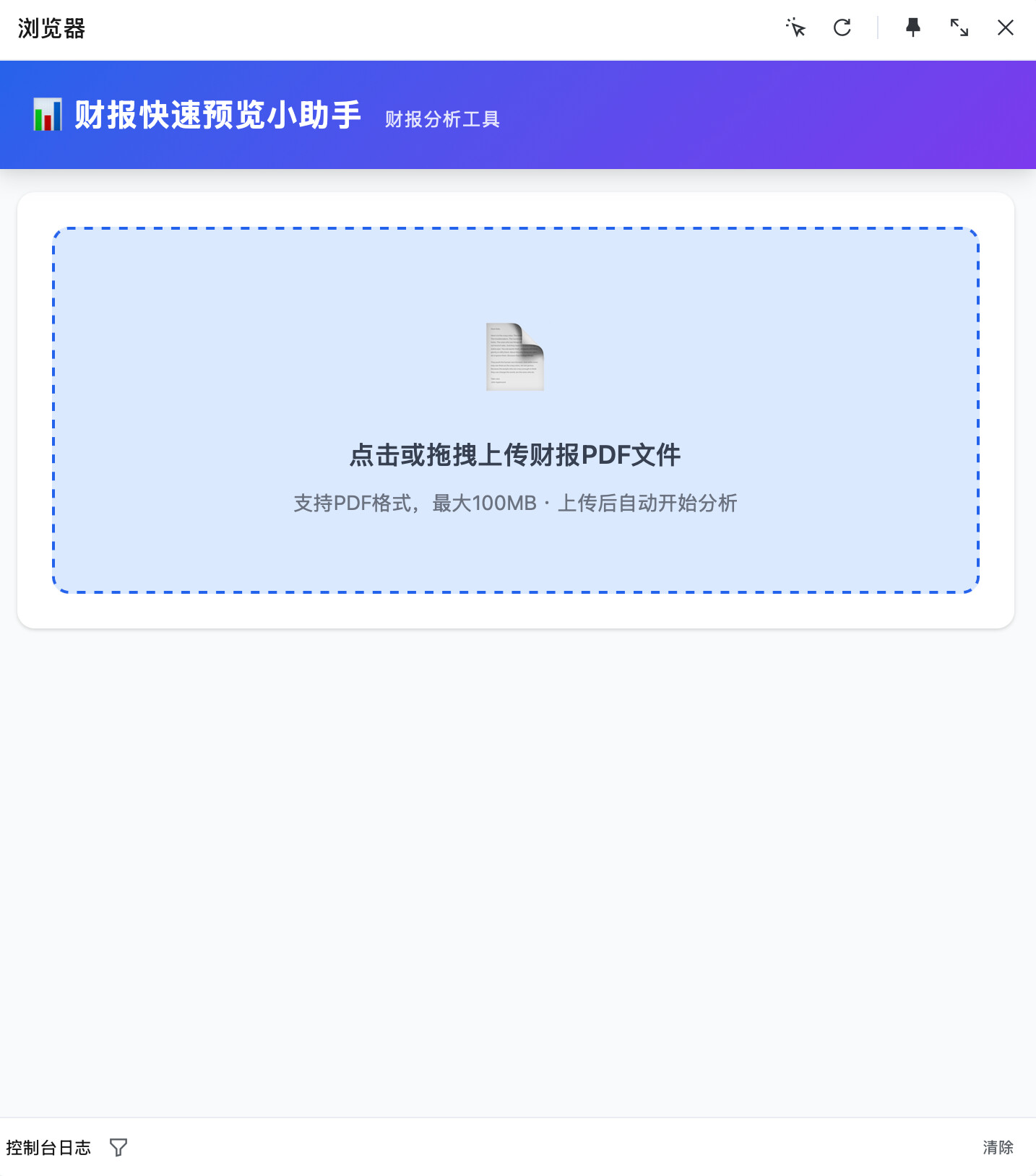 跟TRAE提好我的需求,我现在看财报的效率很低,我想做一个财报快速预览小助手,快速读取用户上传的财报信息,然后形成一些数据图片让用户快速了解,其次就是一定要友好的用户交互,用户只需要上传一张财报,其他什么都不需要做,尽可能简单。