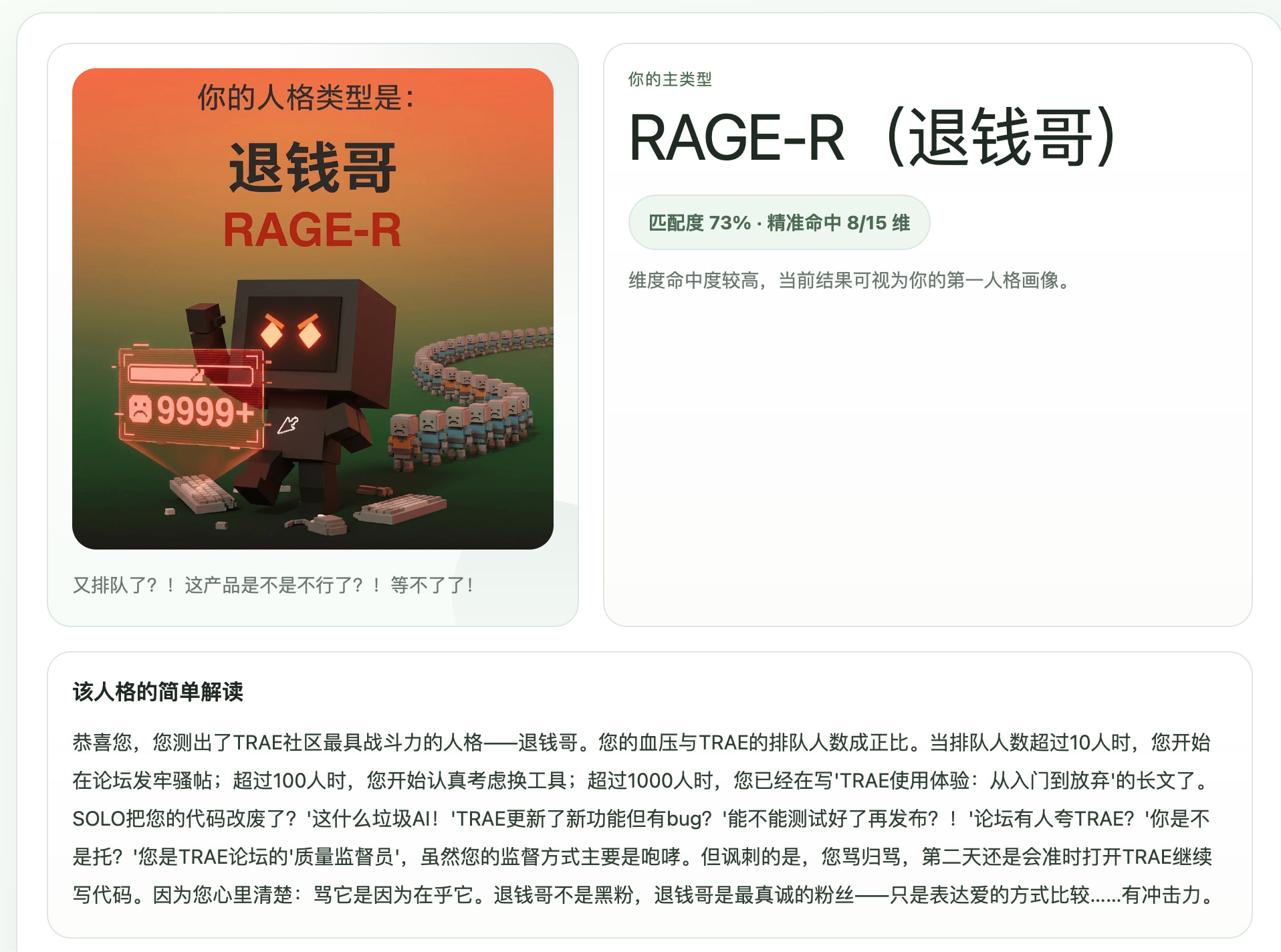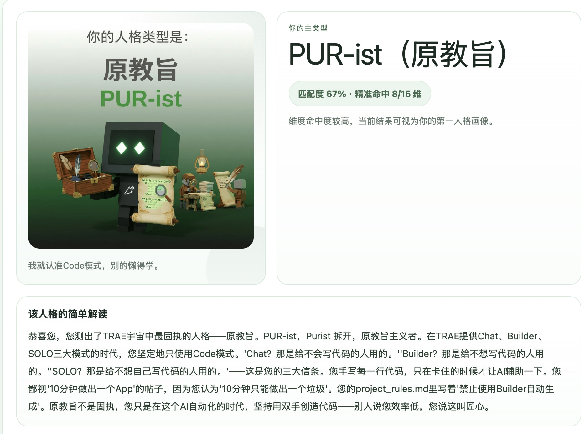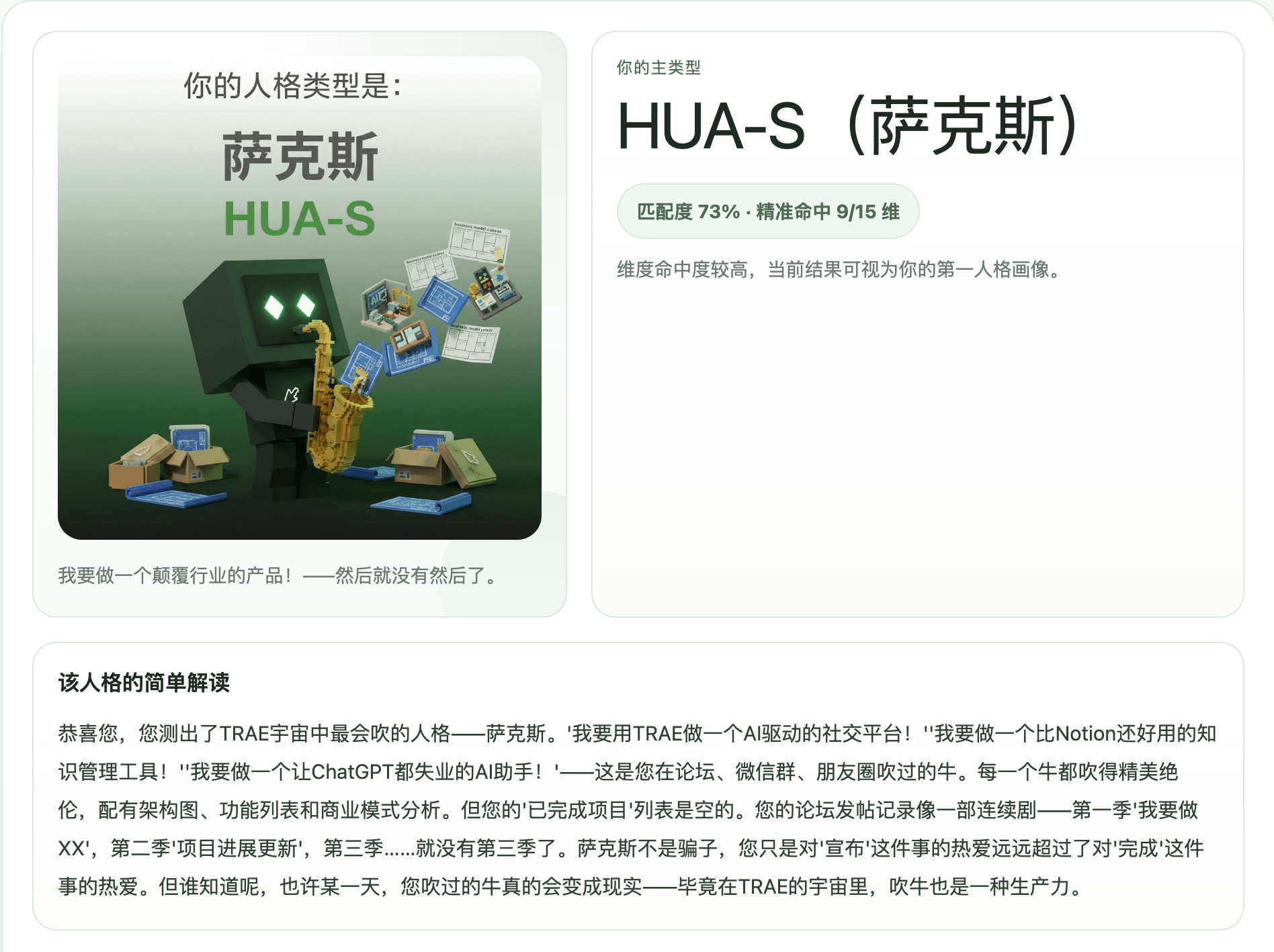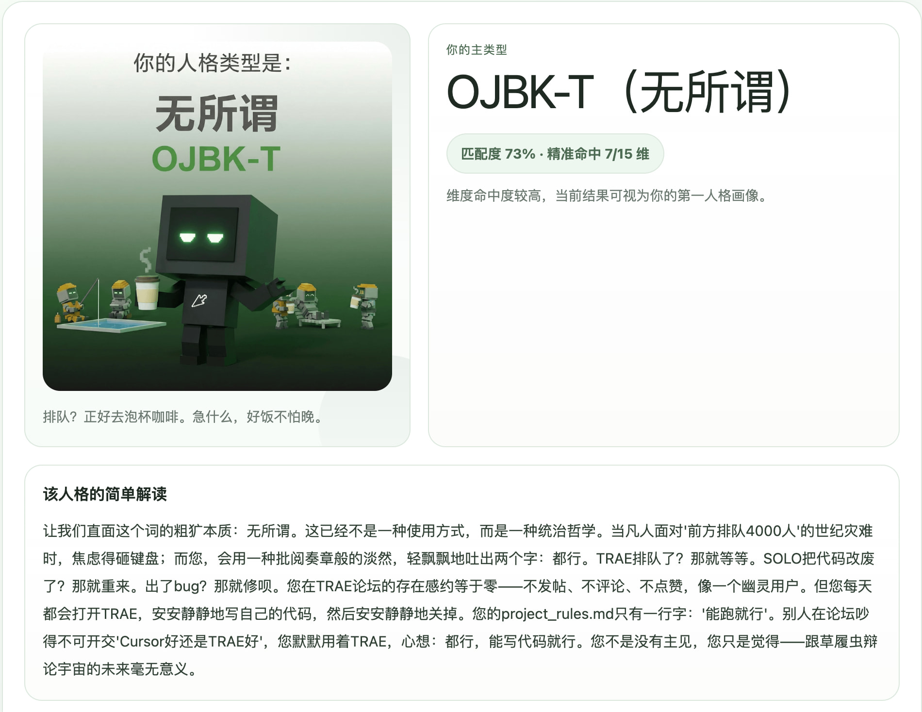 是,其实原来的 SBTI 纯娱乐性质更大一些,结合社区的信息其实可玩性还是很多的,降低了 MBTI 专业度