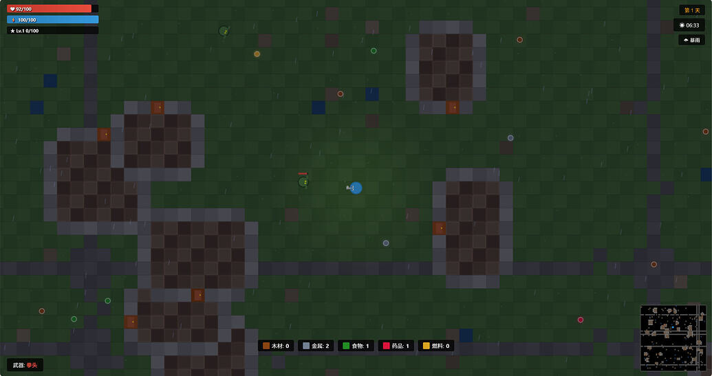 创意:废墟搜集、建造、制作武器,昼夜天气动态生存,建立据点。
