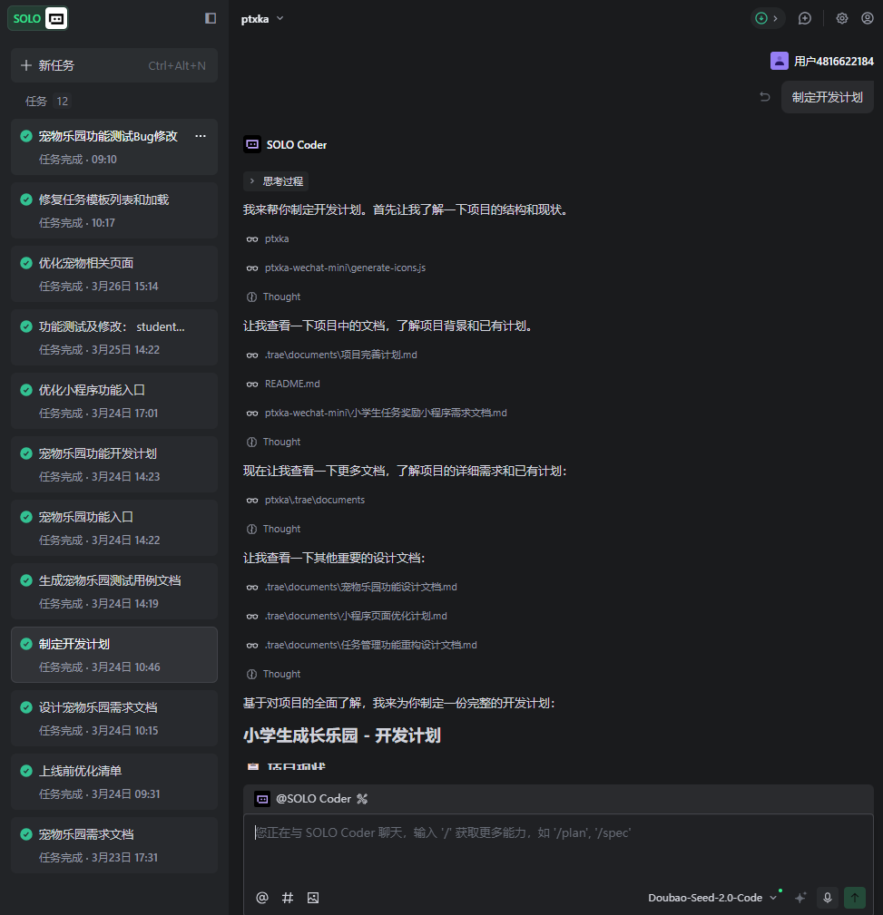 3、开发计划:因为功能比较多,所以先让SOLO制定并输出一个开发计划,划分一下开发优先级,便于迭代开发测试