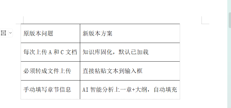 **原来:**找文档(1min)+ 整理格式(1min)+ 回忆进度(1min)+ 等AI理解(反复调试)= 5-10分钟准备。过程不问具体细节和确认方向就开始创作。结果是生成一到两千字的内容,自己还要改一千字左右。