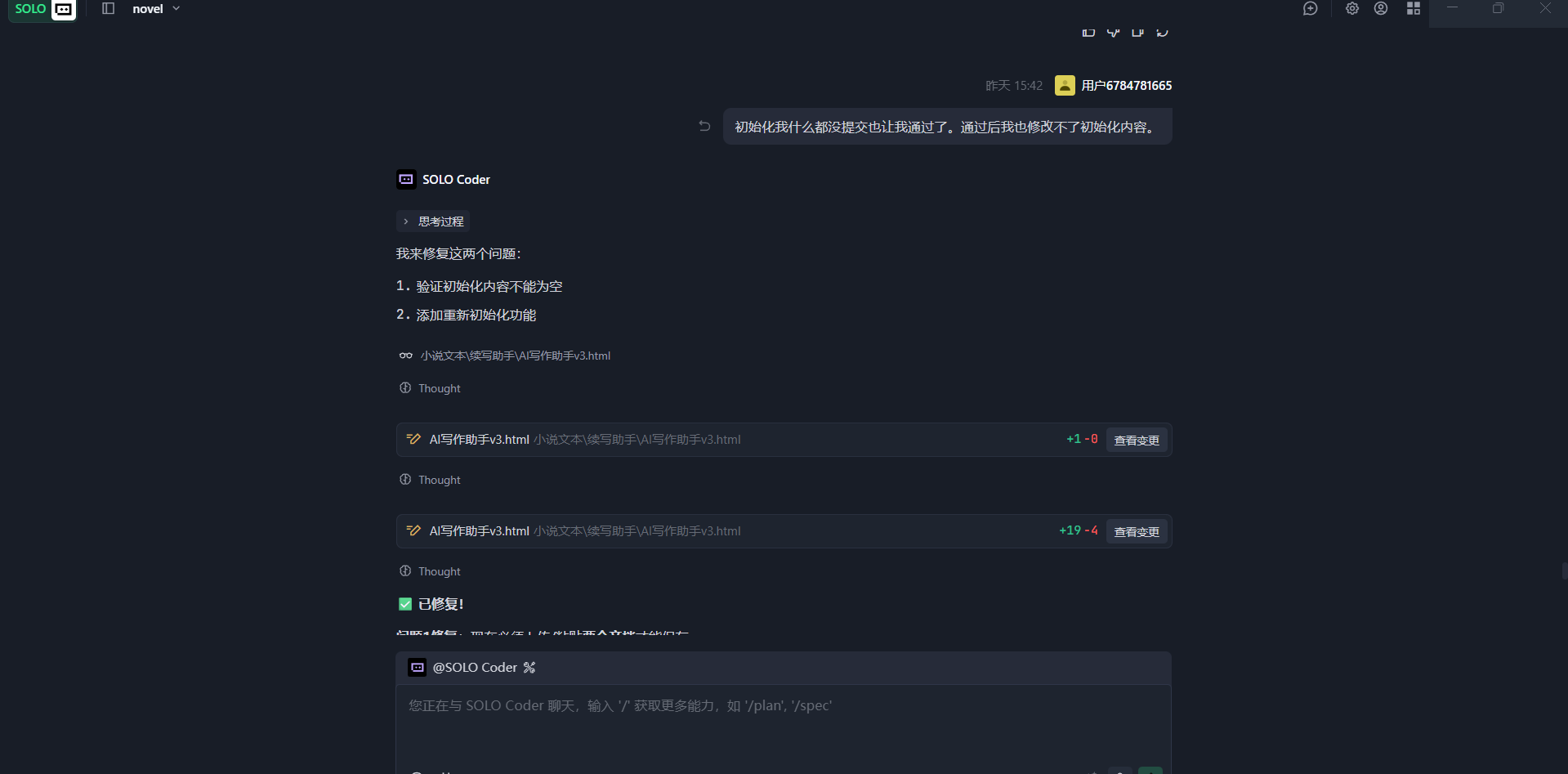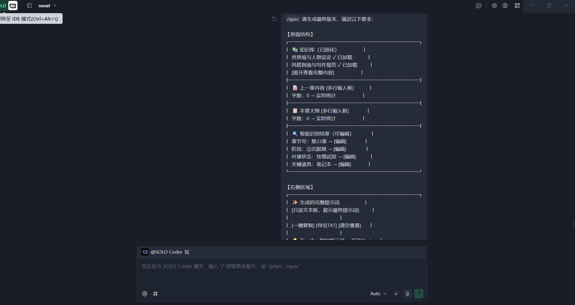 【Code With SOLO】20分钟打造专属续写助手,省去AI投喂步骤,直接生成万字正文
