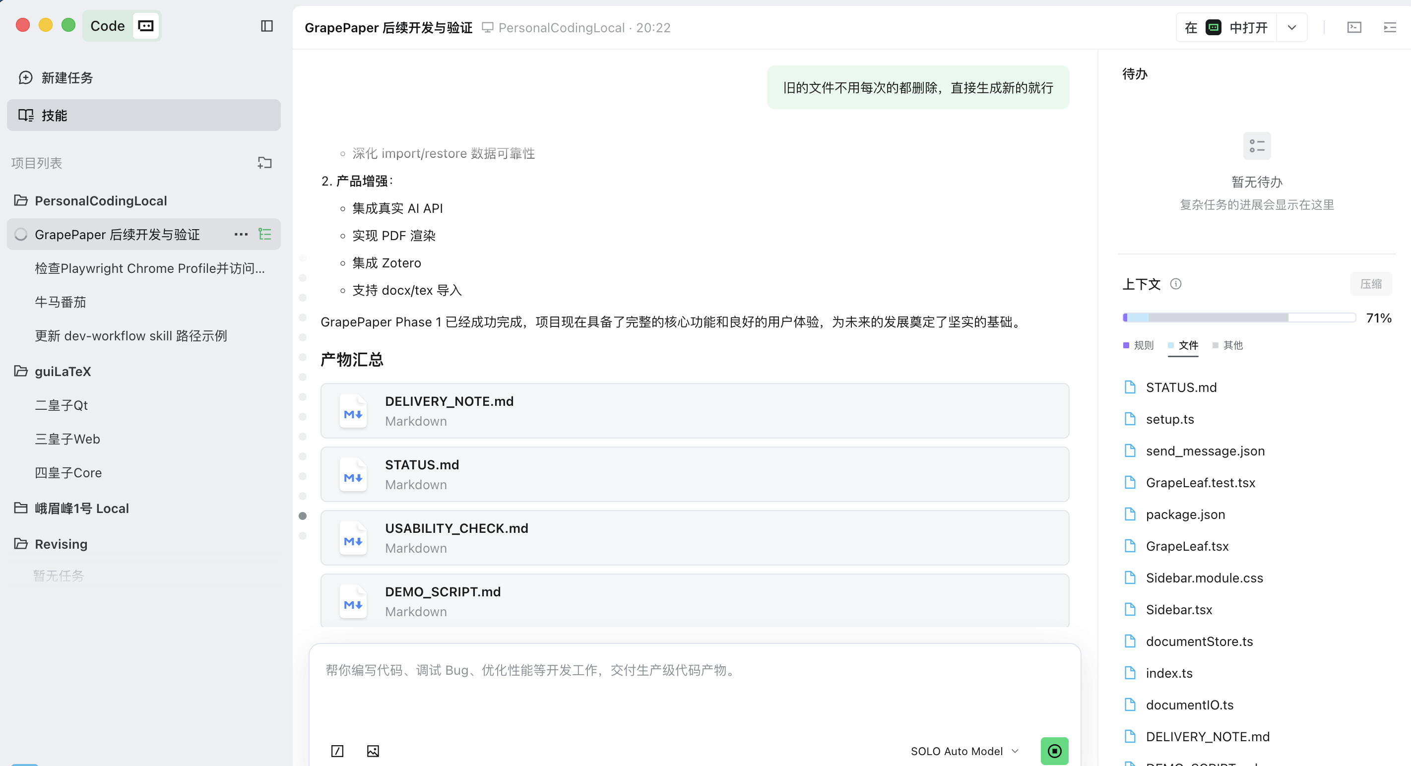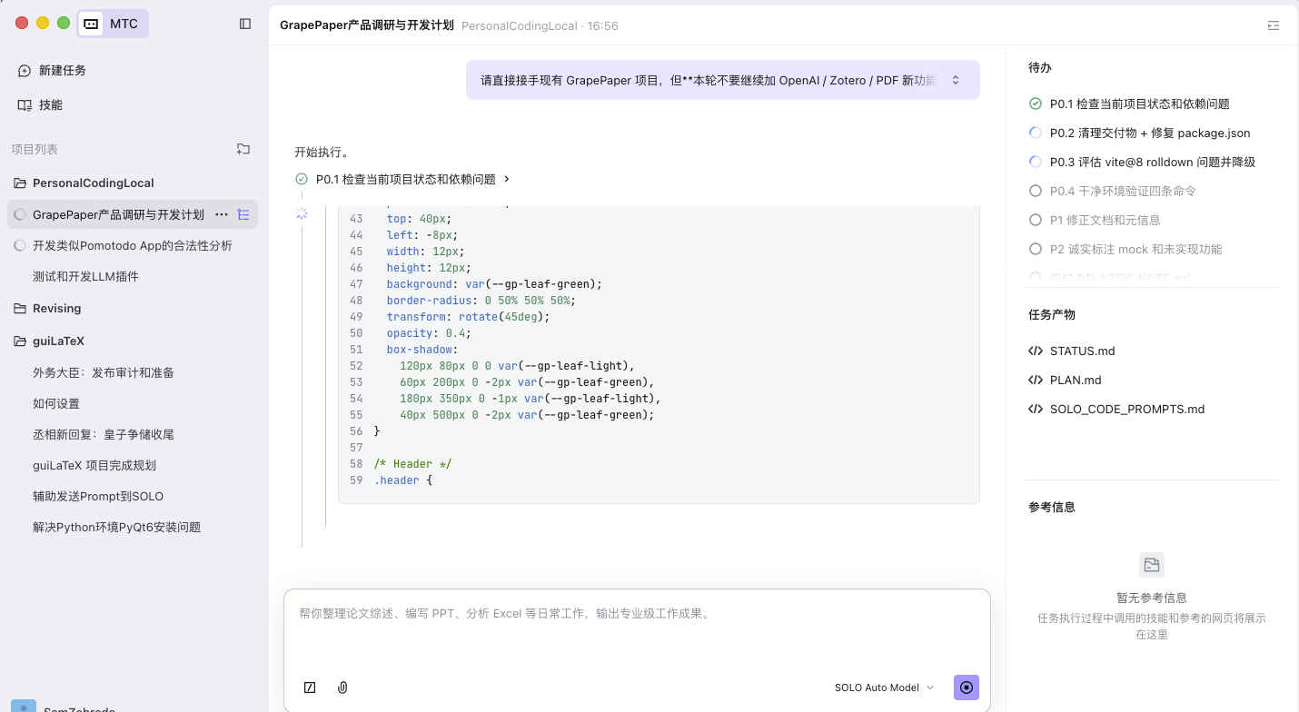 也就是说,这个项目不是“SOLO 一键做完”的,而是: