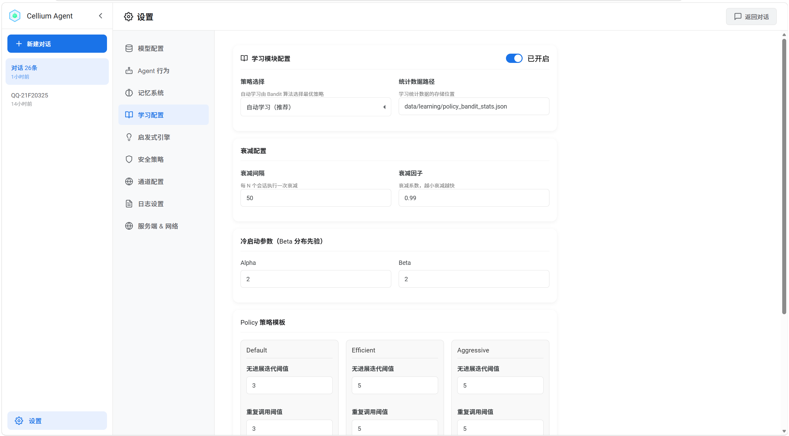 配置 Agent 的自适应学习系统,通过 Bandit 算法自动选择最优执行策略。