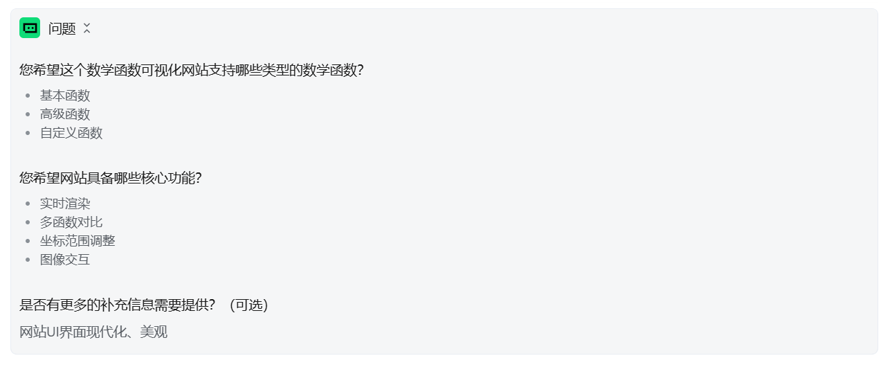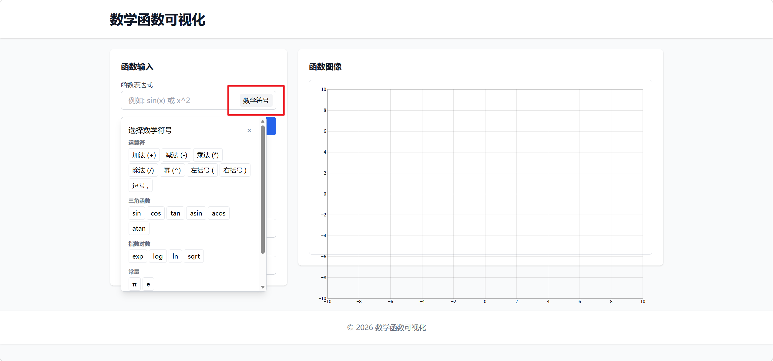 开发一个用于展示数学函数可视化的网站,具有美观的UI界面,用户可以输入数学函数,网站可以实施输出这个数学函数的函数图像,并且这个网站可以在cloudflare pages上部署,为当前项目添加git忽略文件,对于不清晰的需求主动问我补全