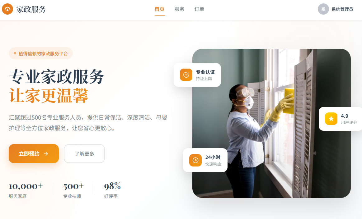 工作场景: 接到一个外包项目需求,客户希望快速搭建一个家政服务预约平台。传统开发流程需要: