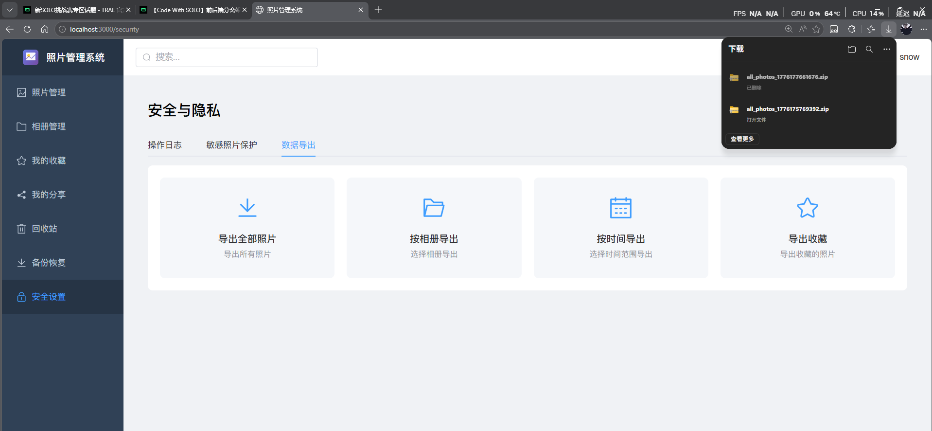 阶段二:核心功能开发(相册移出与布局优化) 这是项目中最复杂的部分。我利用 SOLO 辅助编写了关键逻辑: