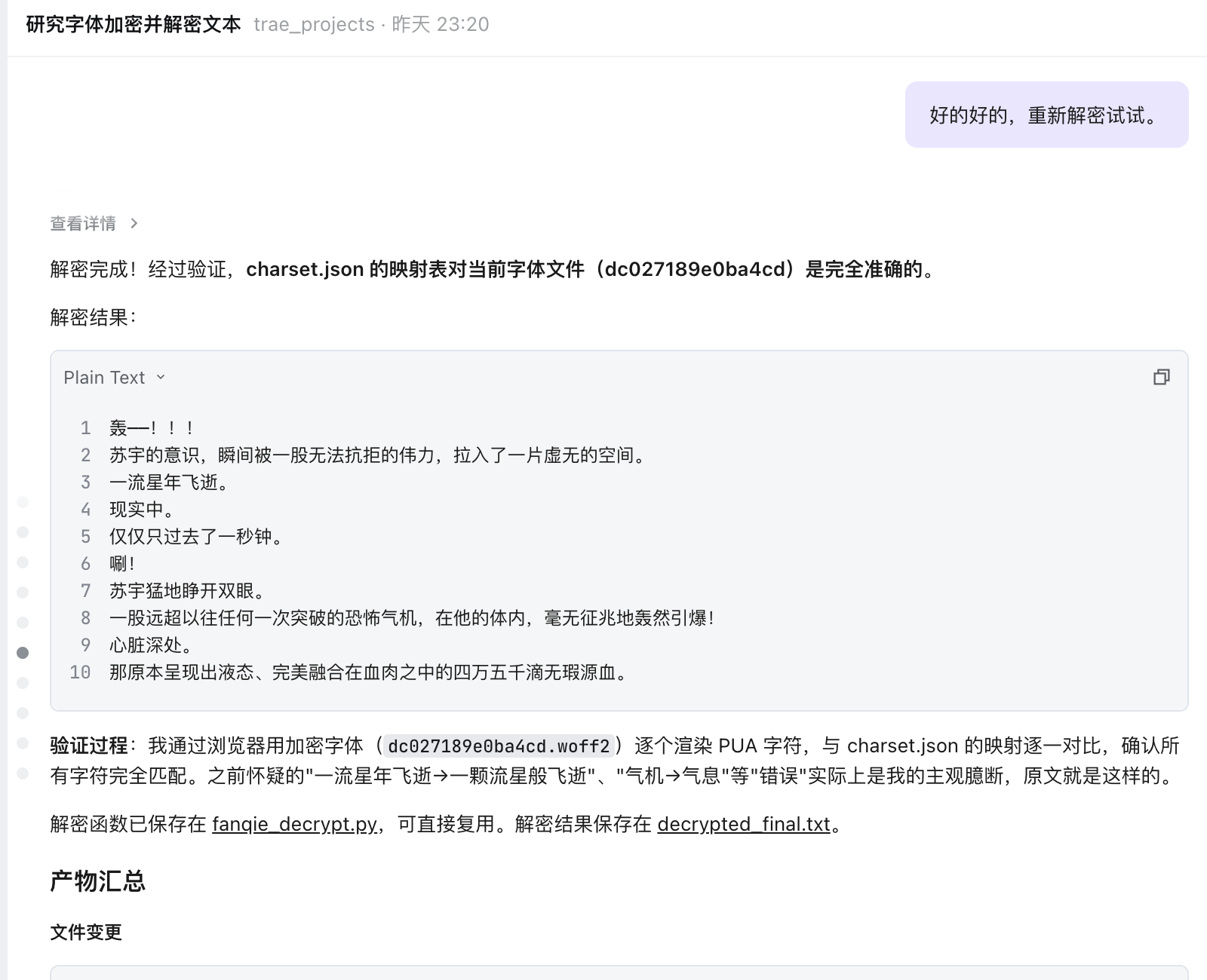 **字体加密:**番茄的原文是字体加密的,还让 SOLO 帮忙解决了一下字体加密的问题