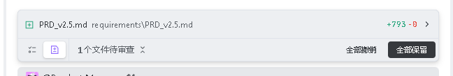 建议SOLO模式也在任务完成处增加这个带审查文件列表,提供一键全部保留功能。