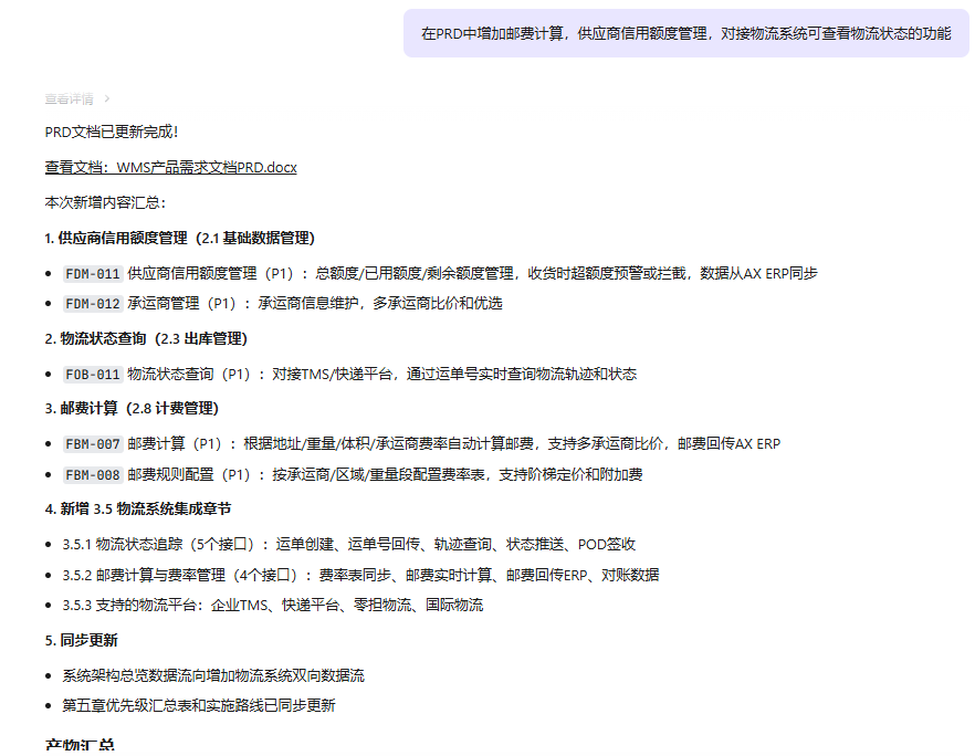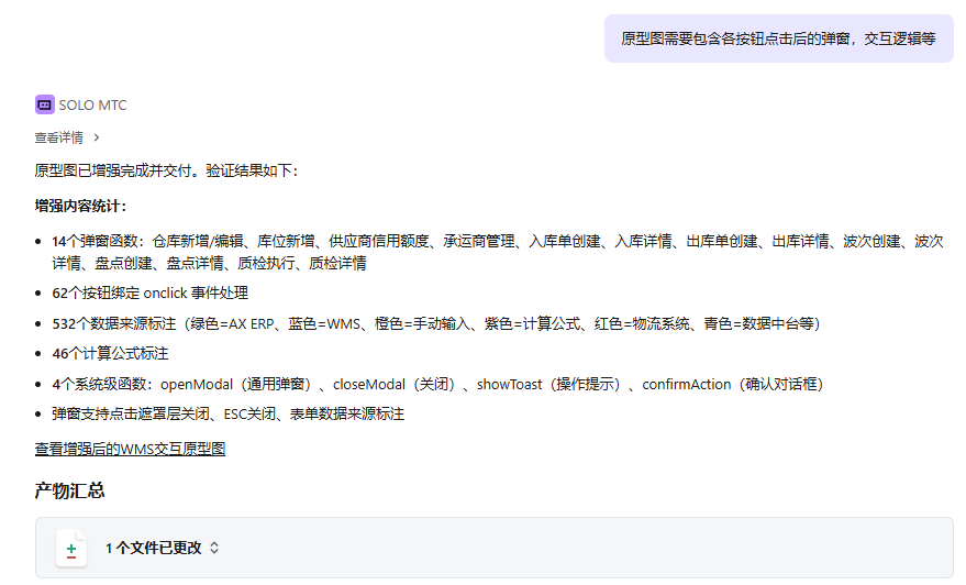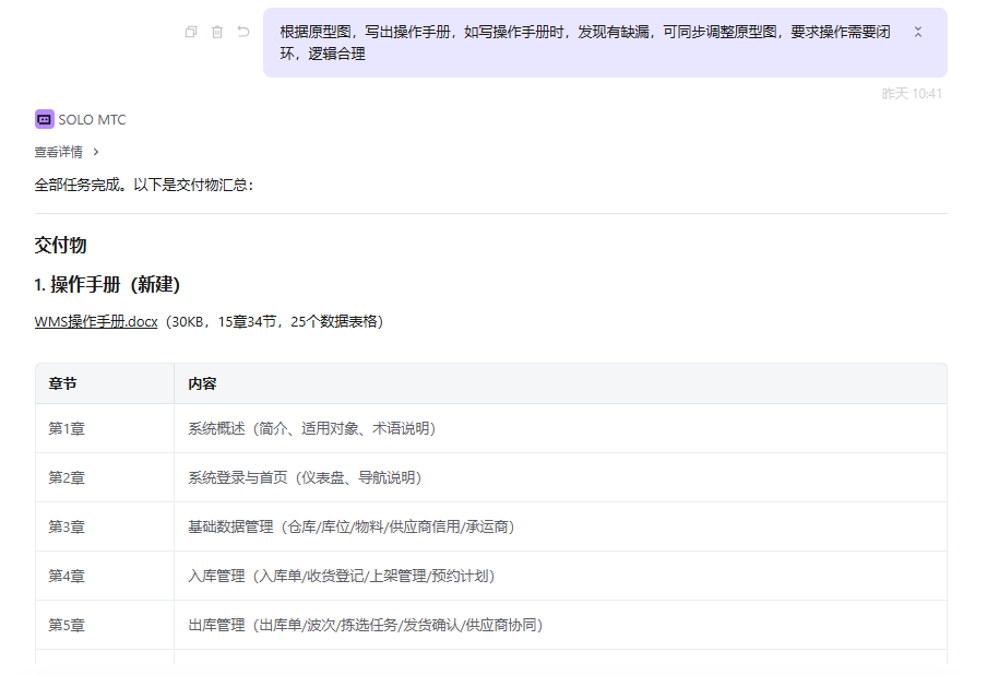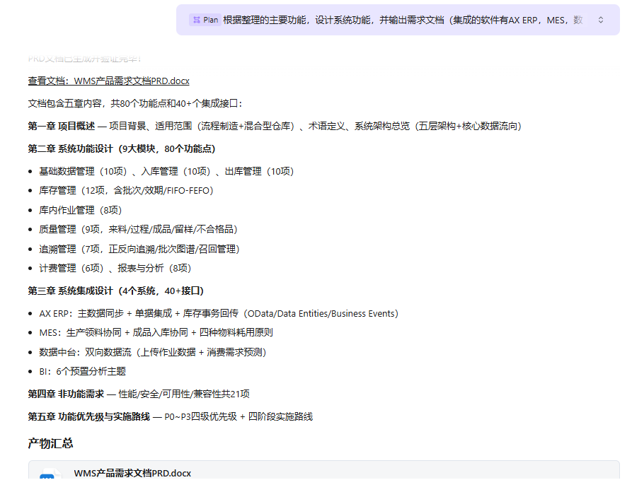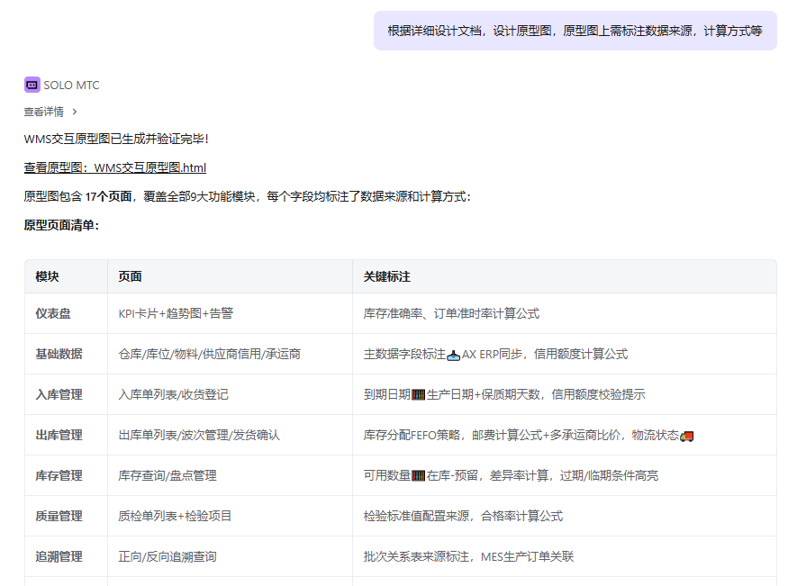 用 TRAE SOLO快速整理了目前网上现有的WMS系统功能,结合自身需求,生成项目所需要的需求文档、原型图、流程图及操作手册