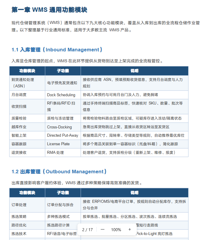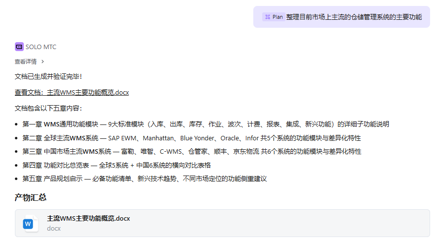 先让SOLO根据现有WMS系统整理出WMS通用功能
