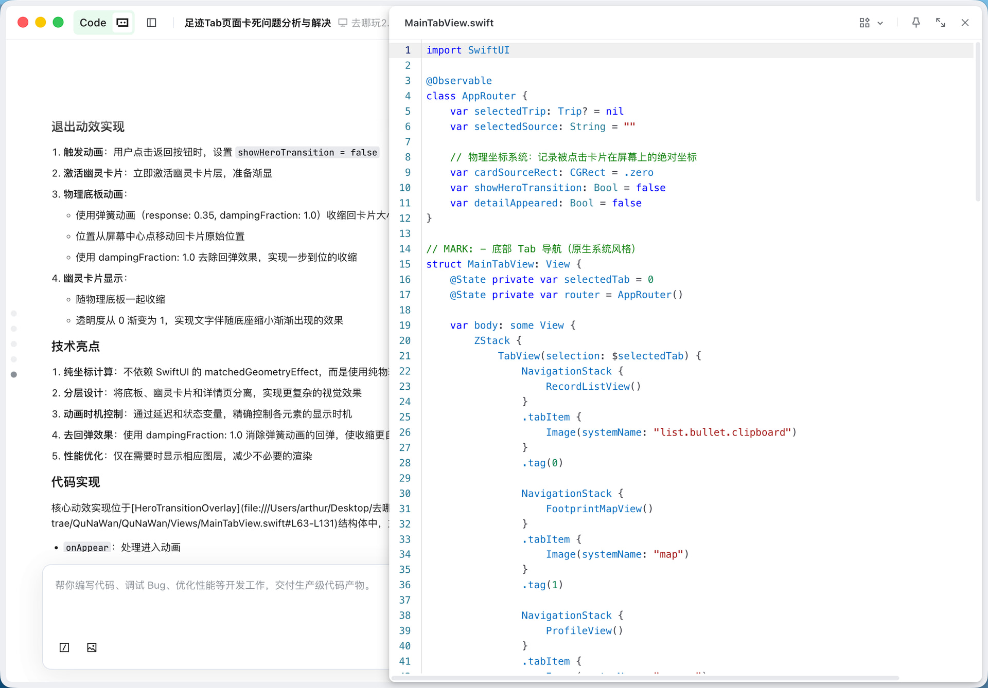 - 要敢砍需求、敢推翻重来 —— SwiftUI 做不了文字描边?不做了。拖拽方案叠了两次补丁还卡?那就推翻重写。跟 AI 协作最忌讳的就是"沉没成本心态"。